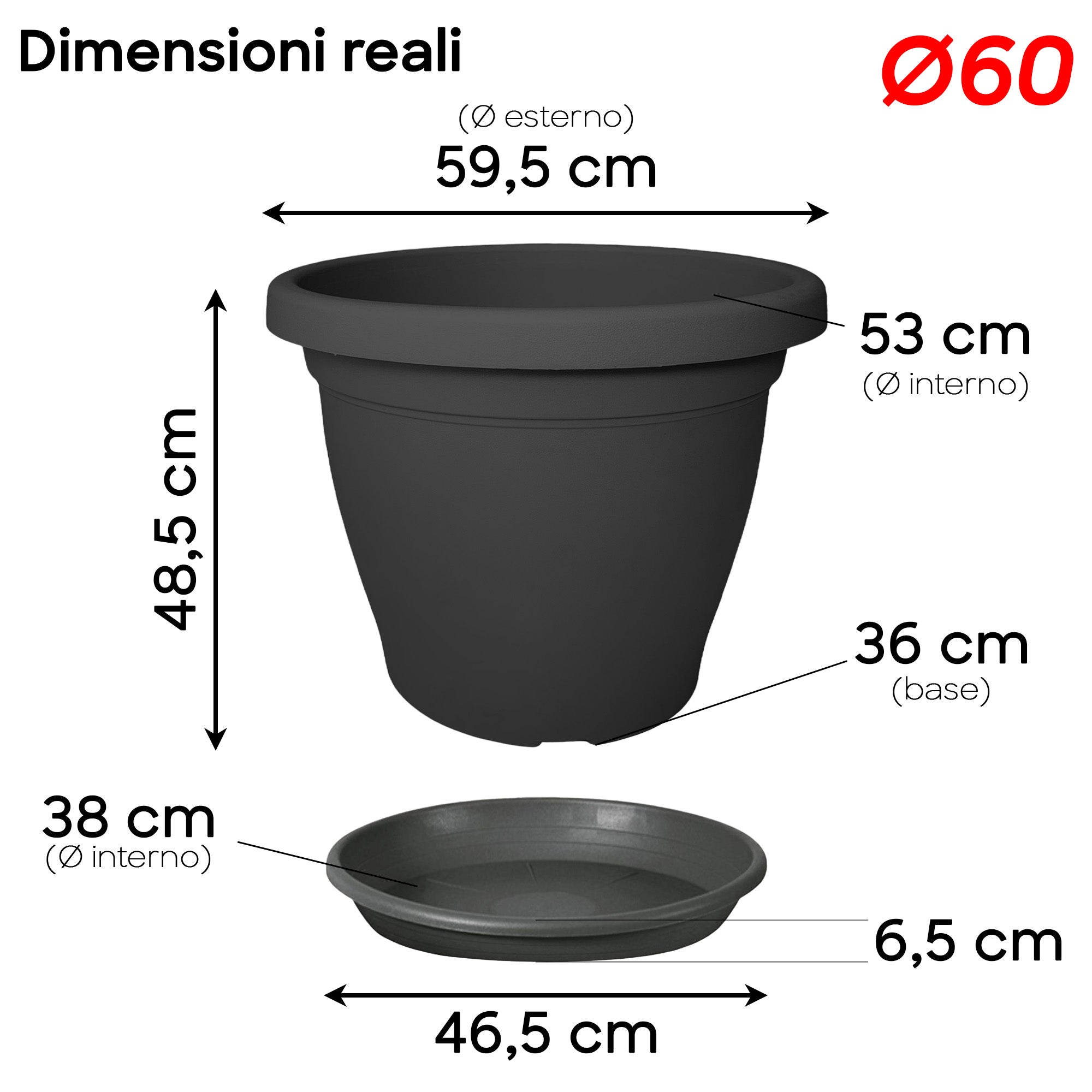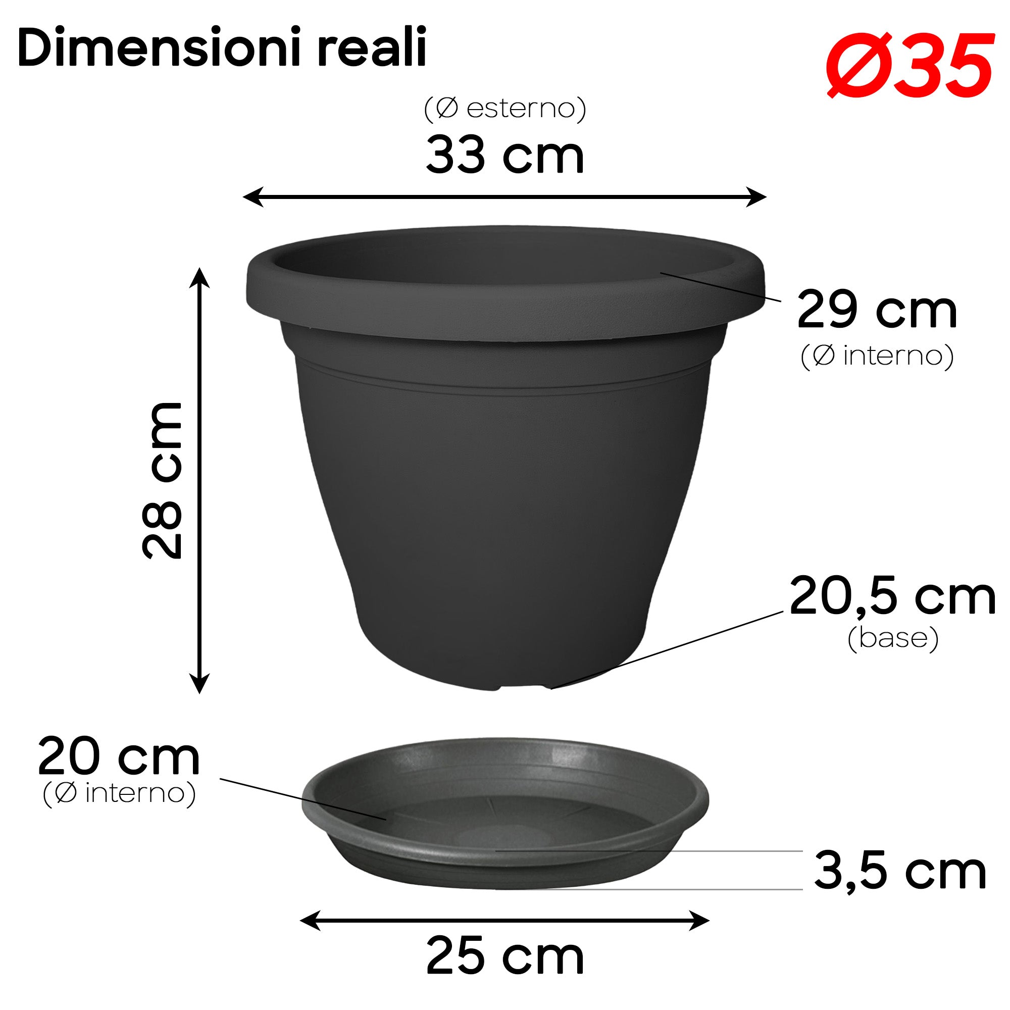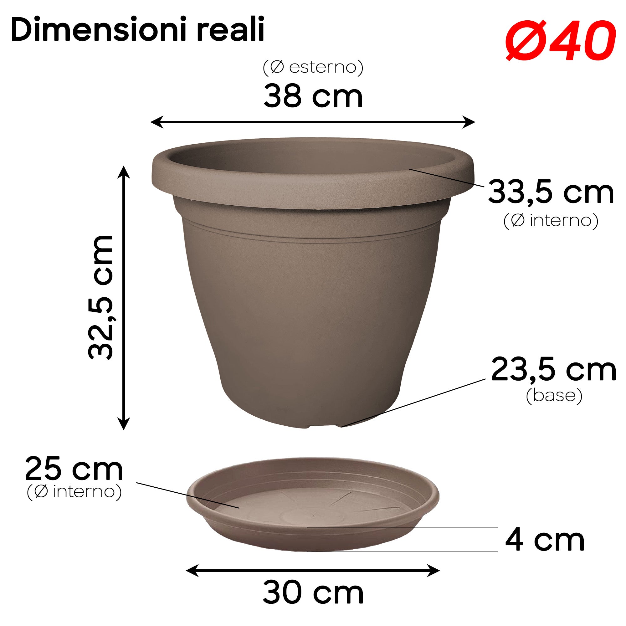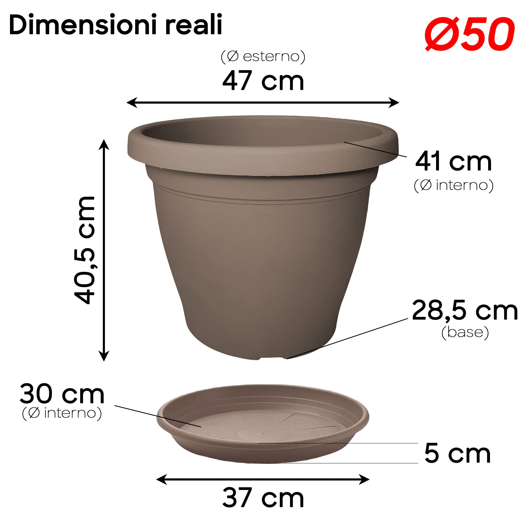 Sicignano Set Vaso Verona Con Sottovaso E Terriccio Plastica Per Giardino Interno Esterno