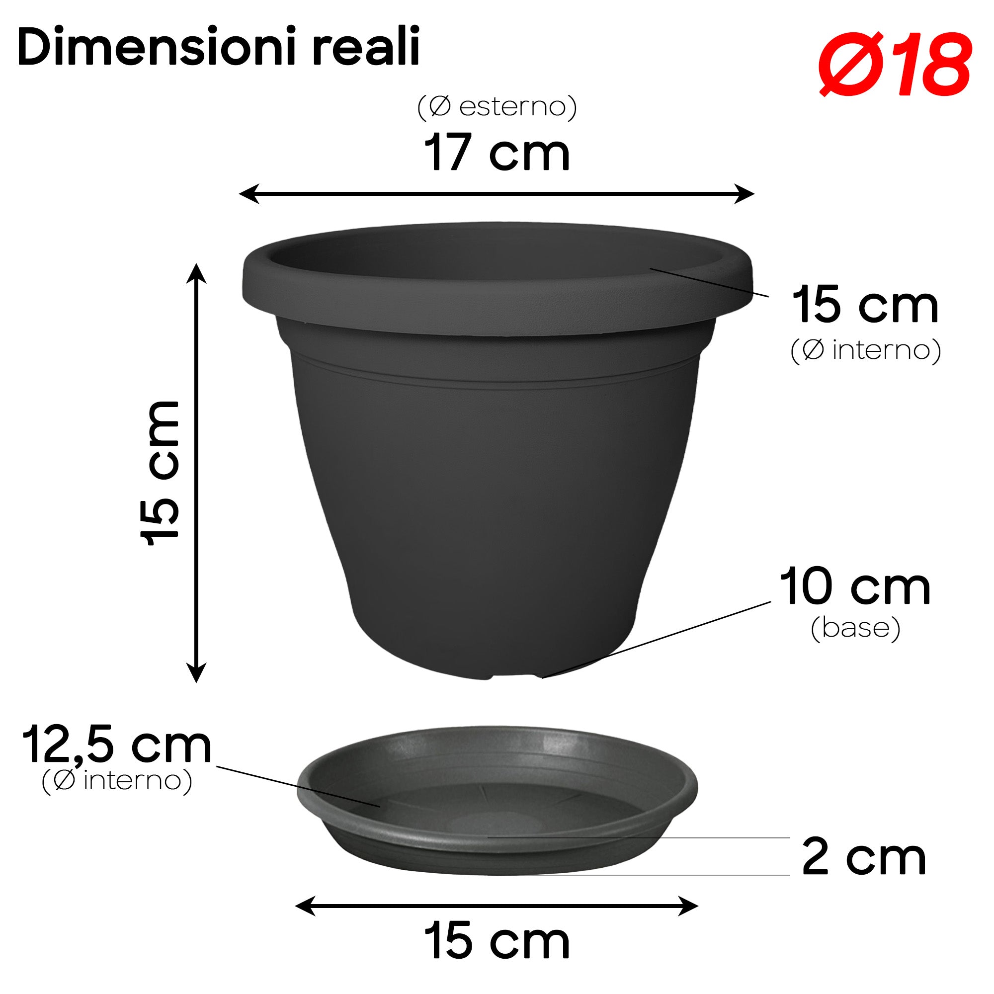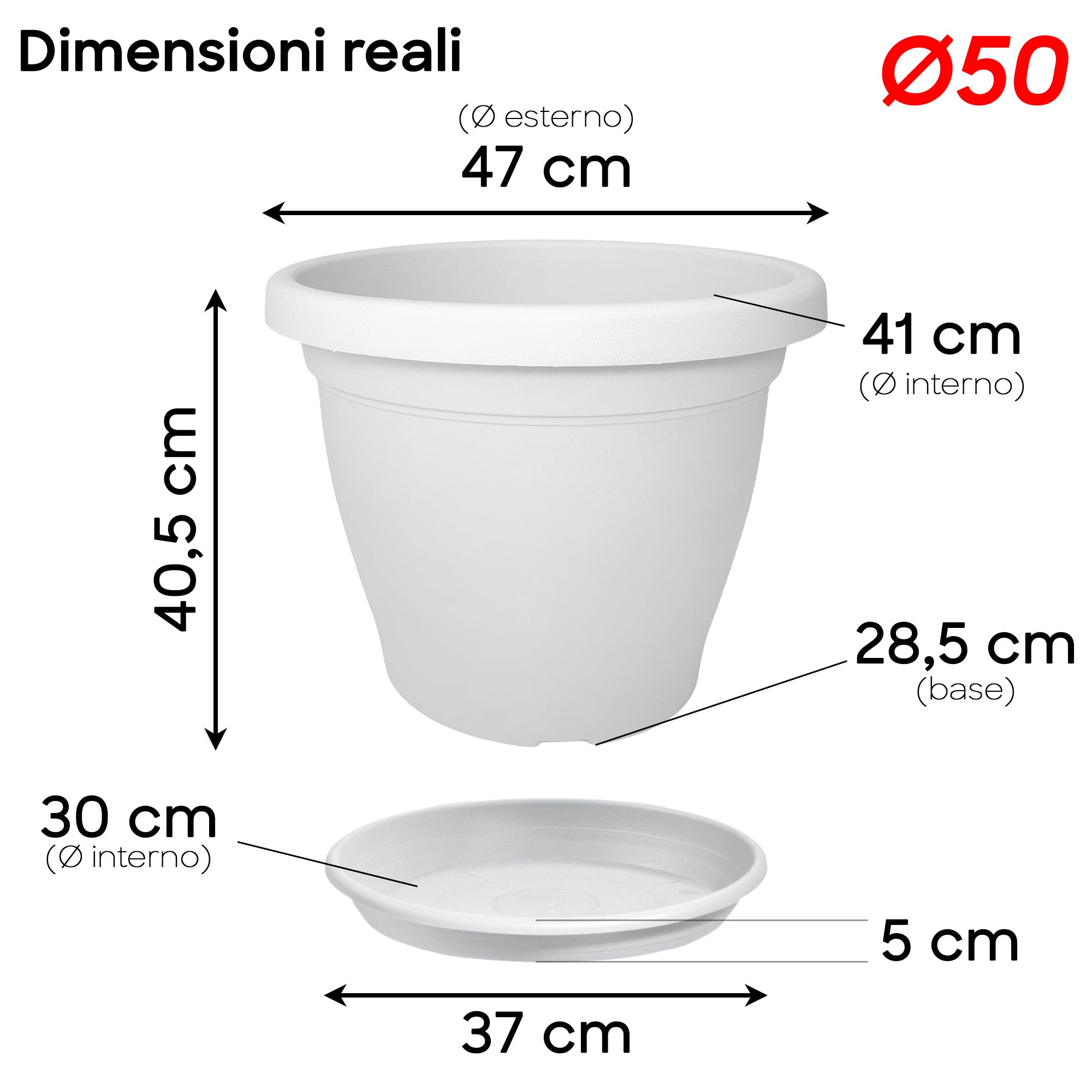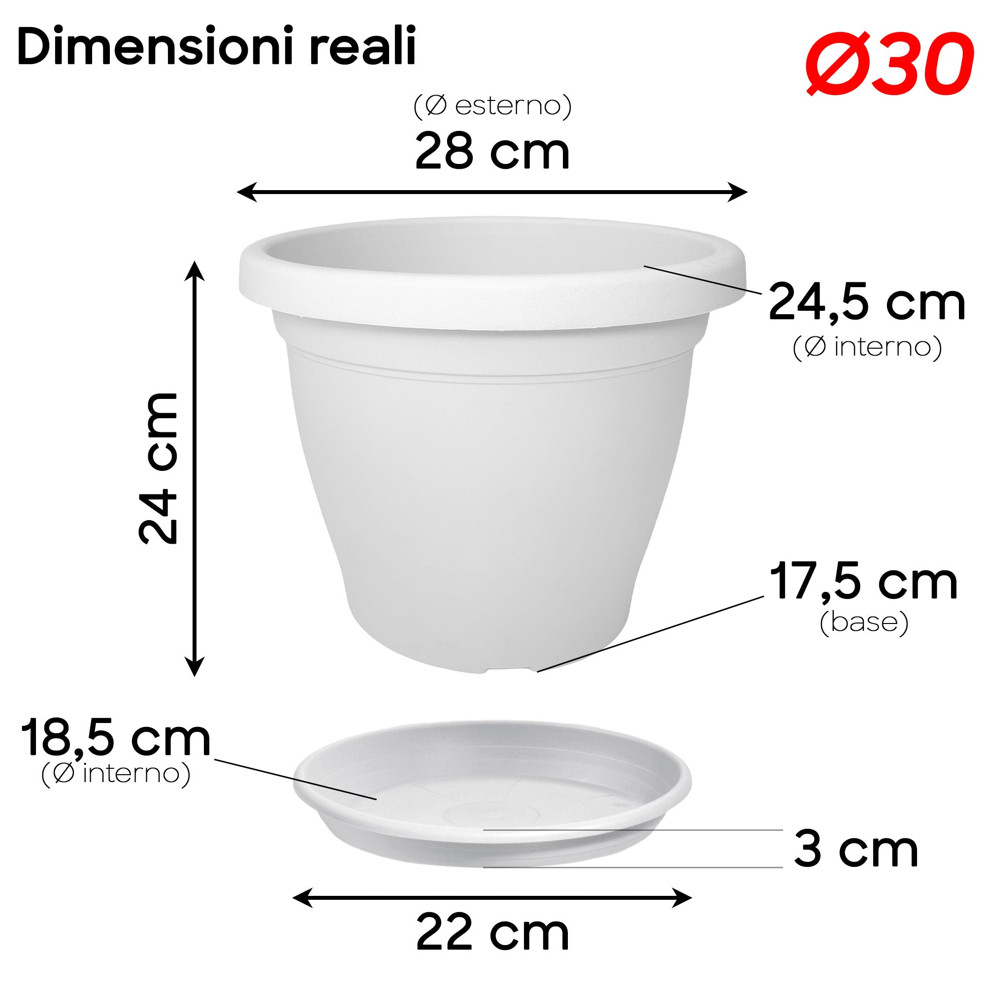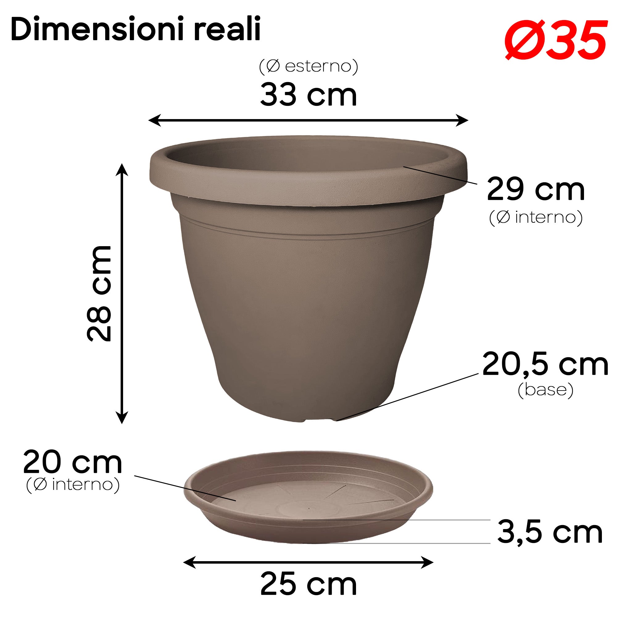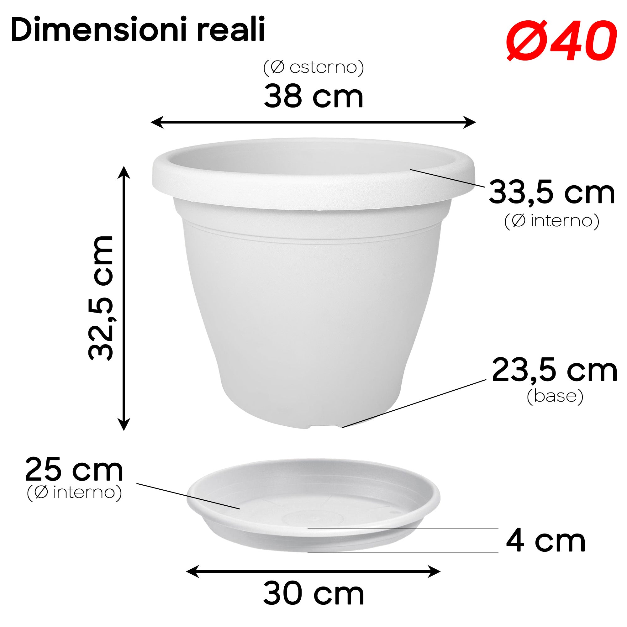 Sicignano Set Vaso Verona Con Sottovaso E Terriccio Plastica Per Giardino Interno Esterno
