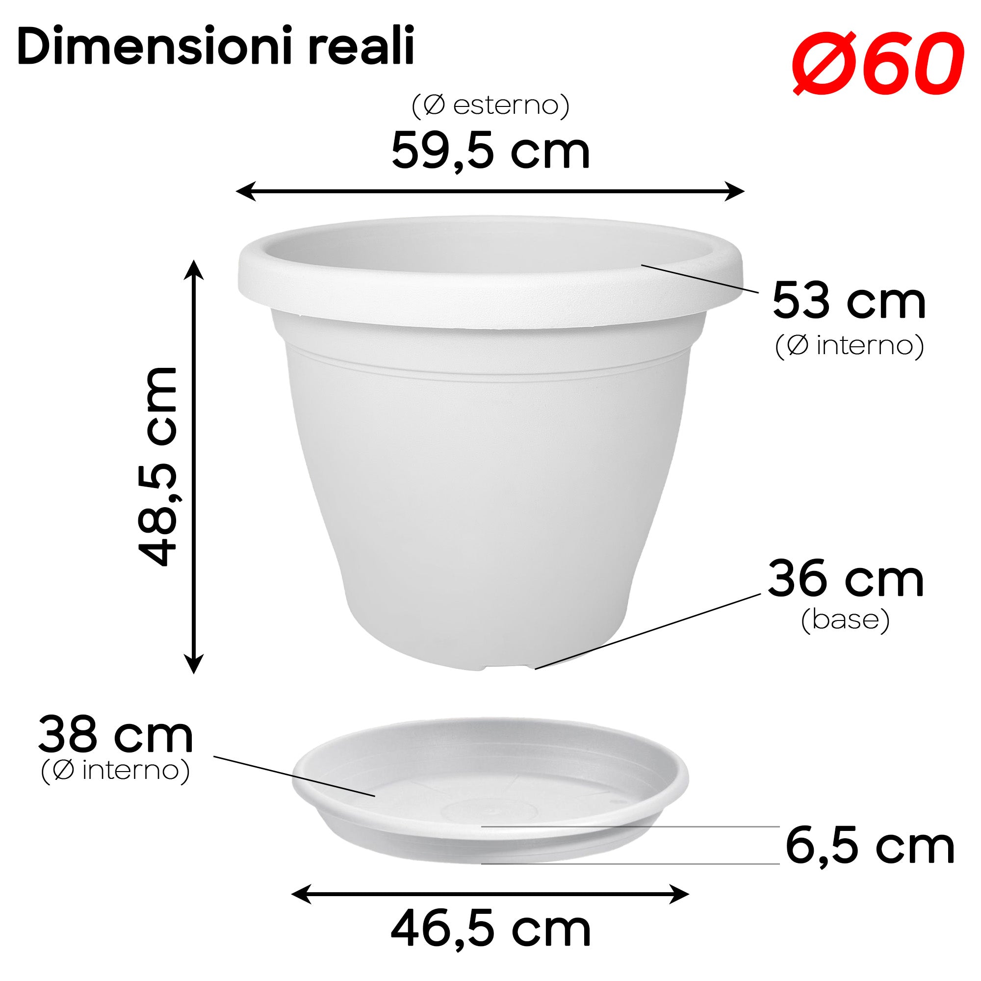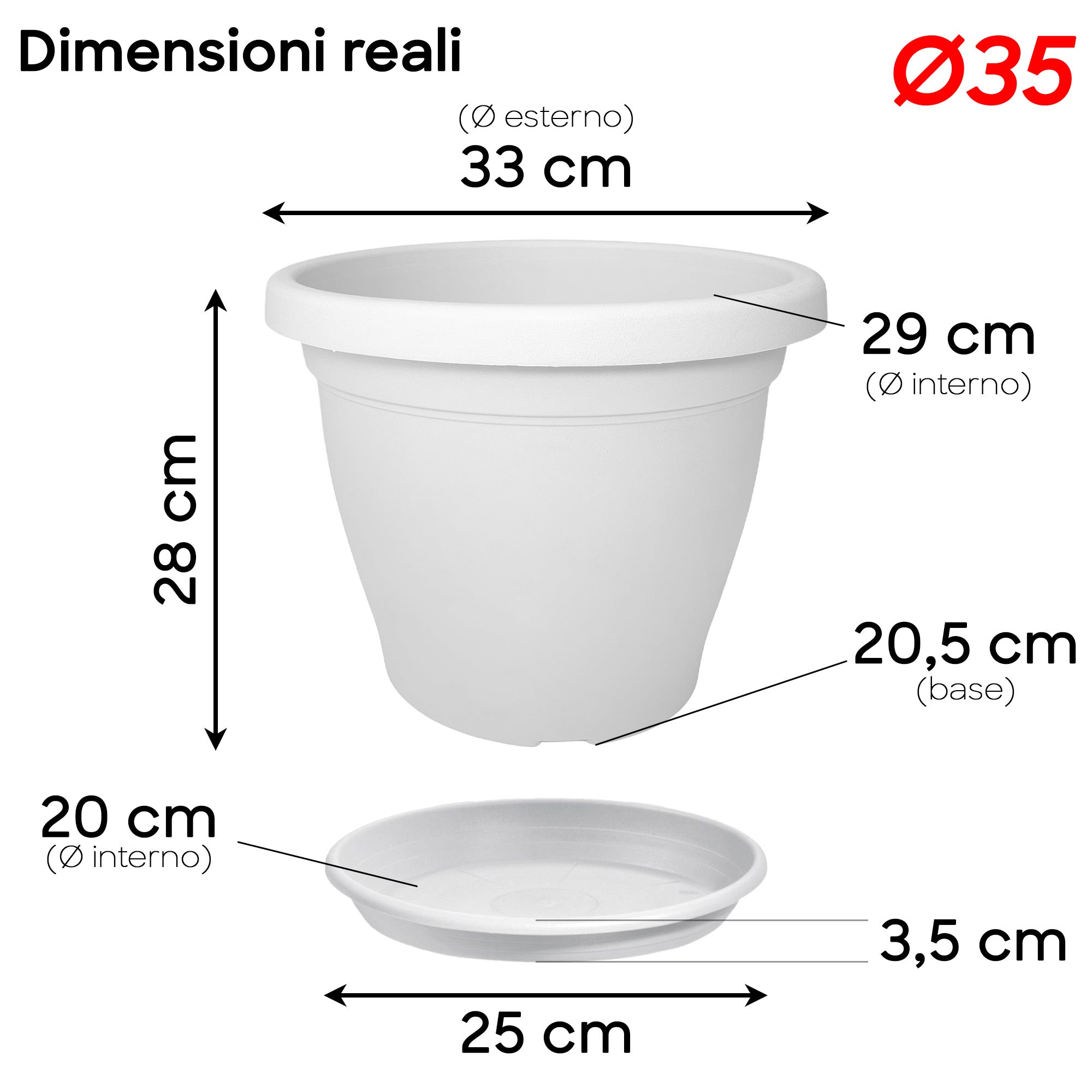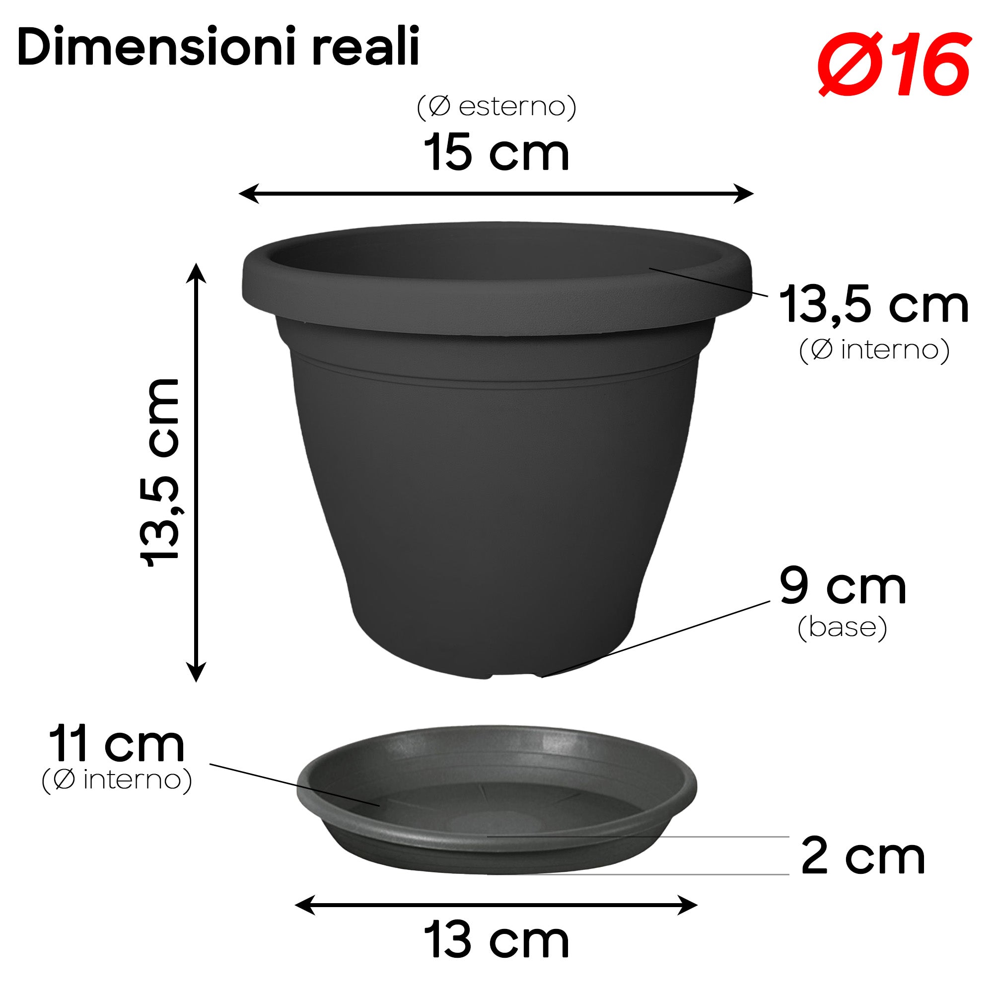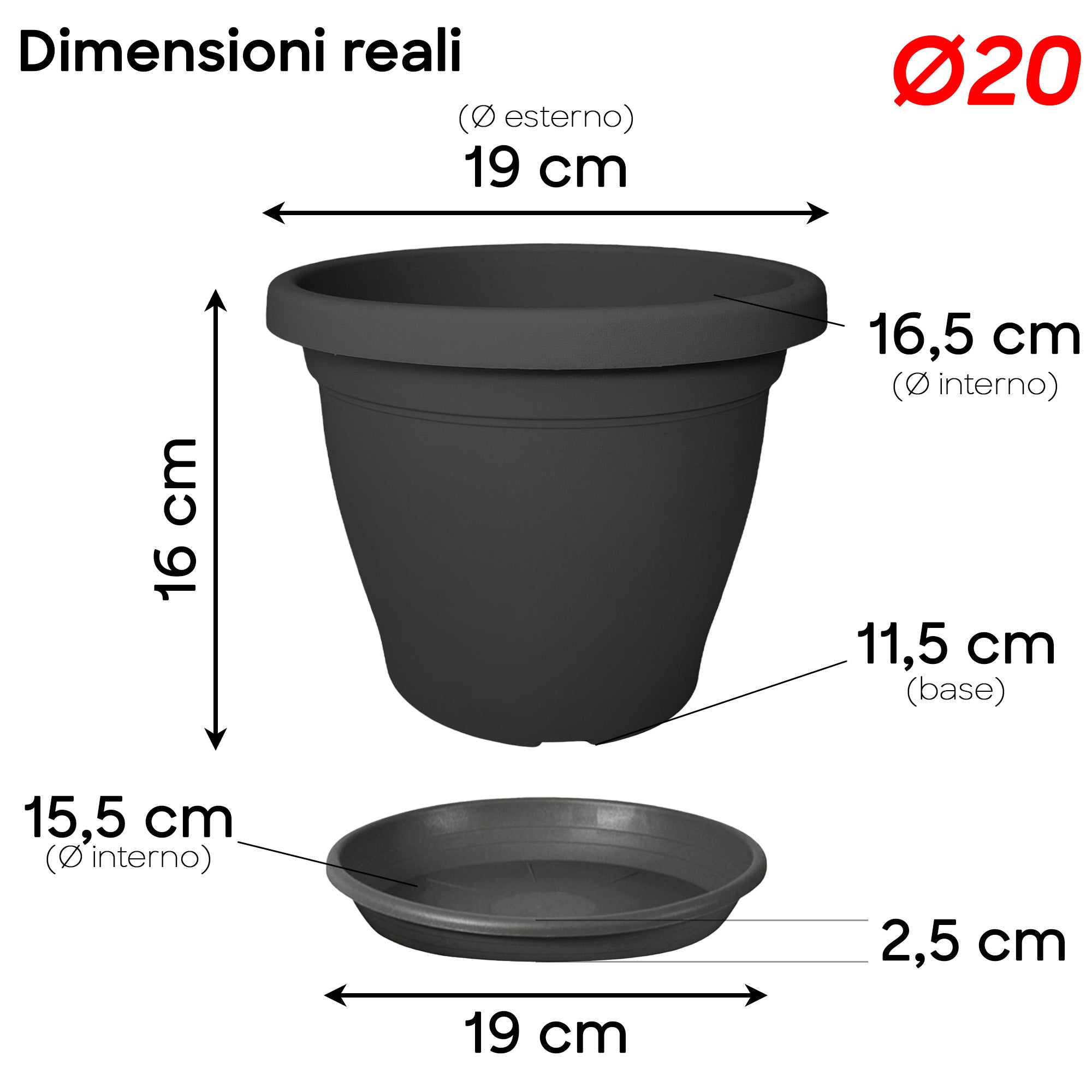 Sicignano Set Vaso Verona Con Sottovaso E Terriccio Plastica Per Giardino Interno Esterno