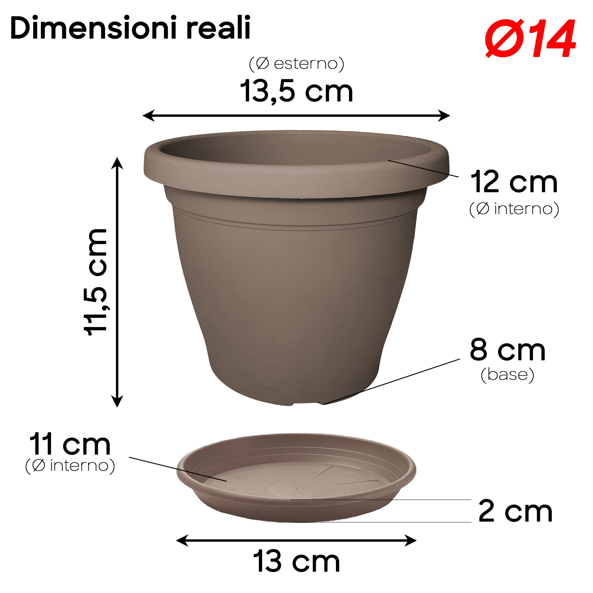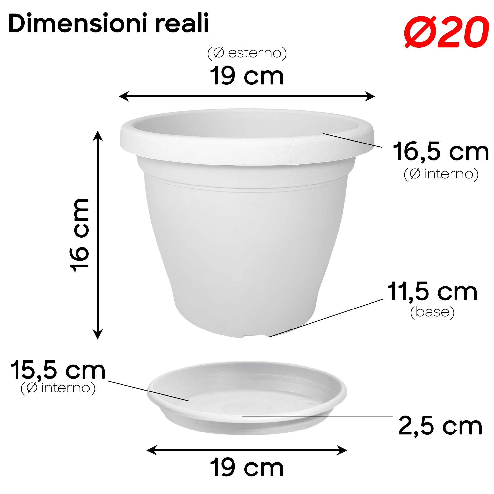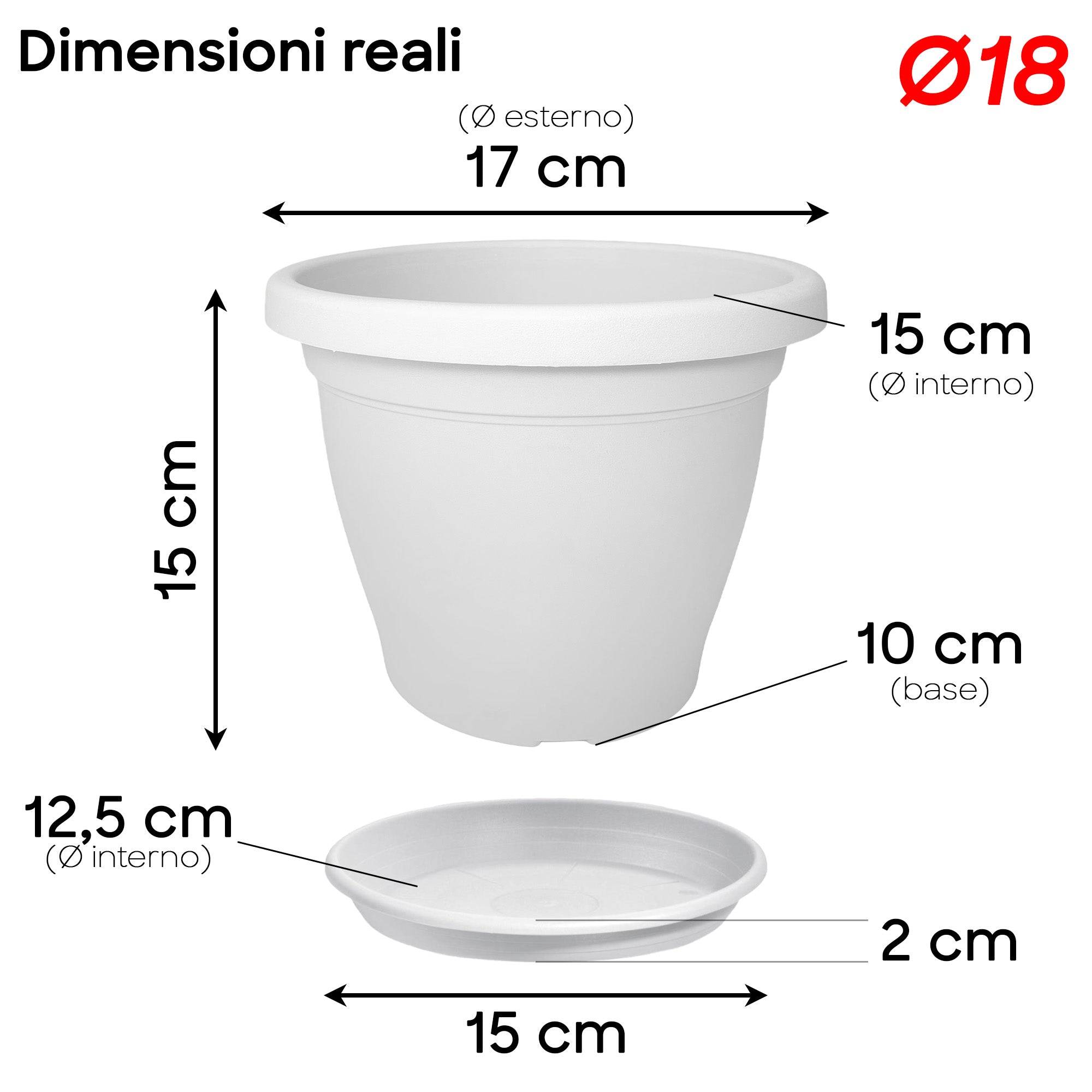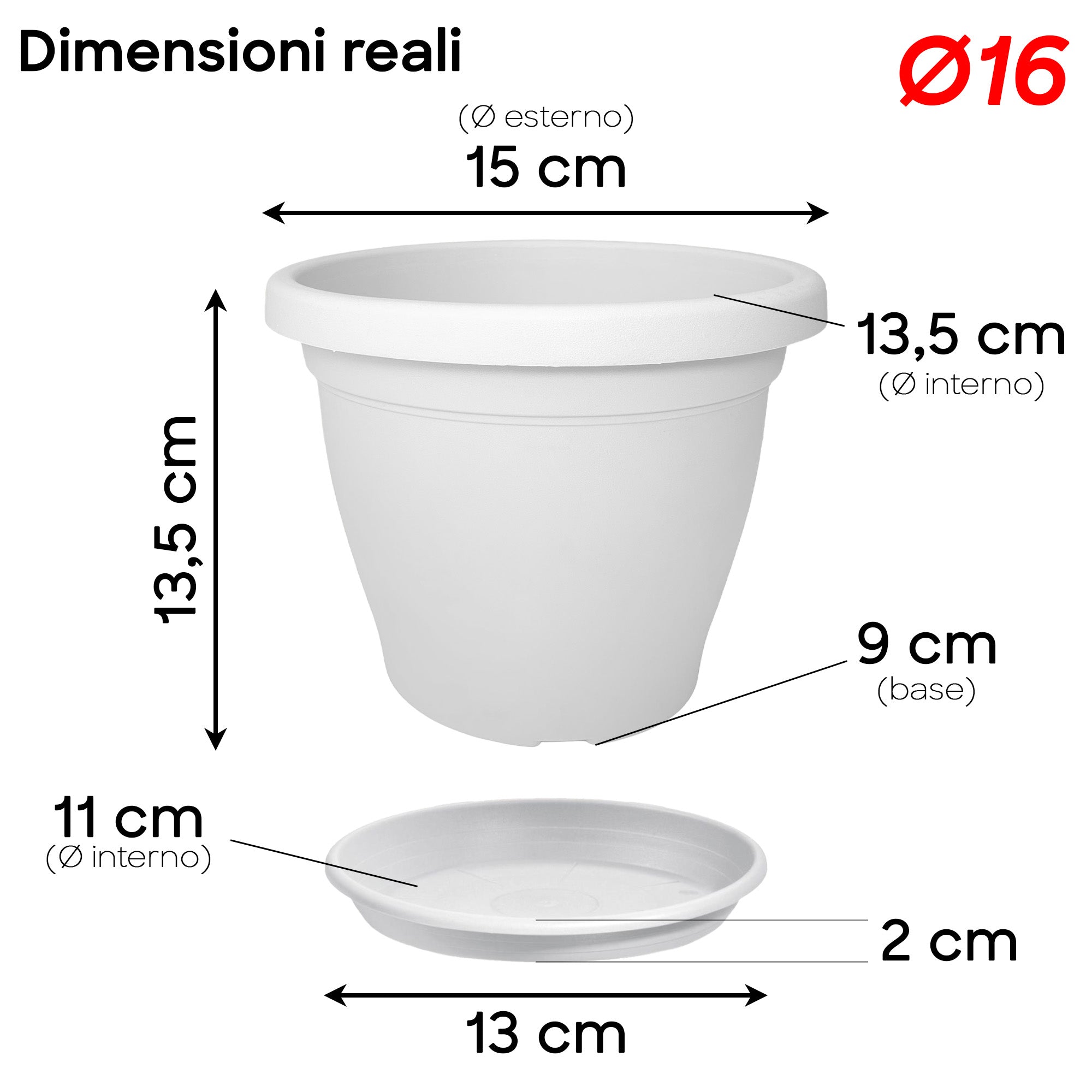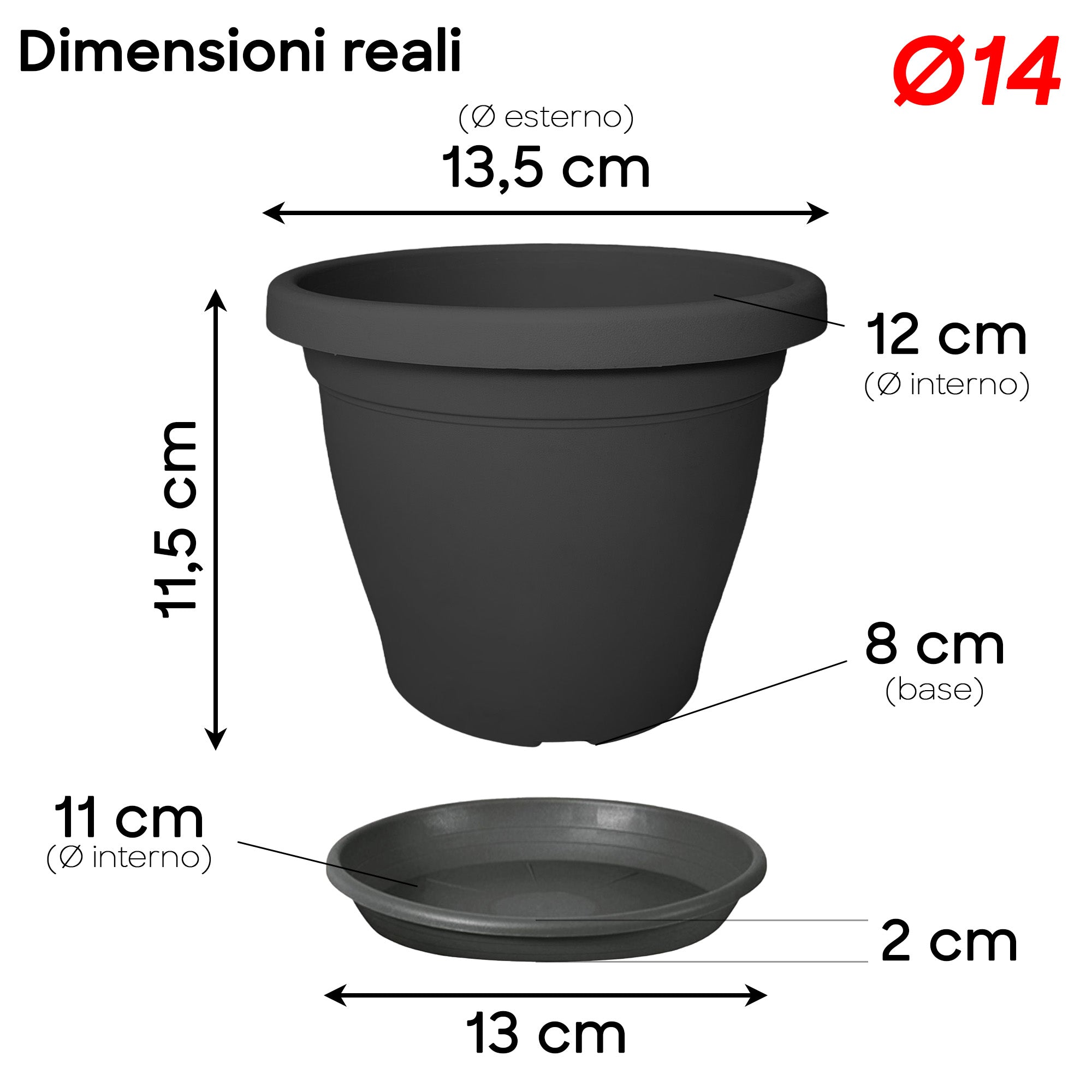 Sicignano Set Vaso Verona Con Sottovaso E Terriccio Plastica Per Giardino Interno Esterno