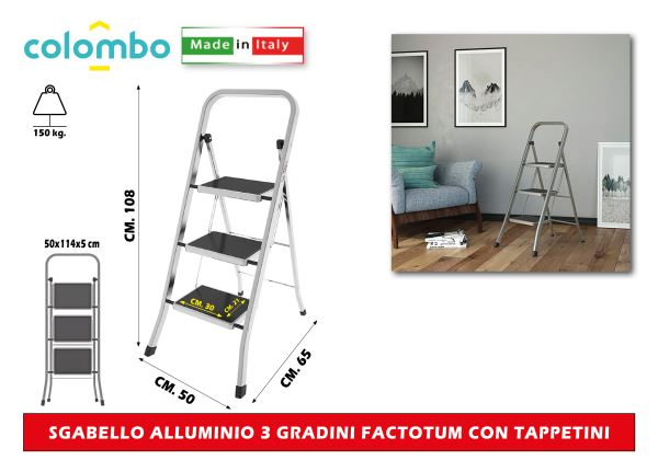 Sgabello Alluminio 3 Gradini Factotum Con Tappetini