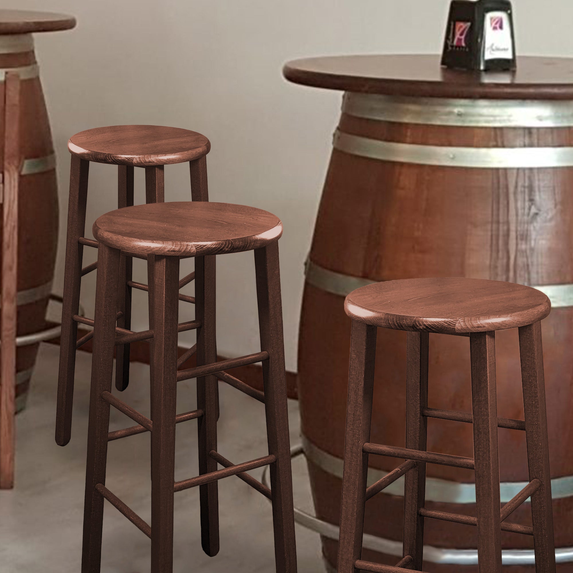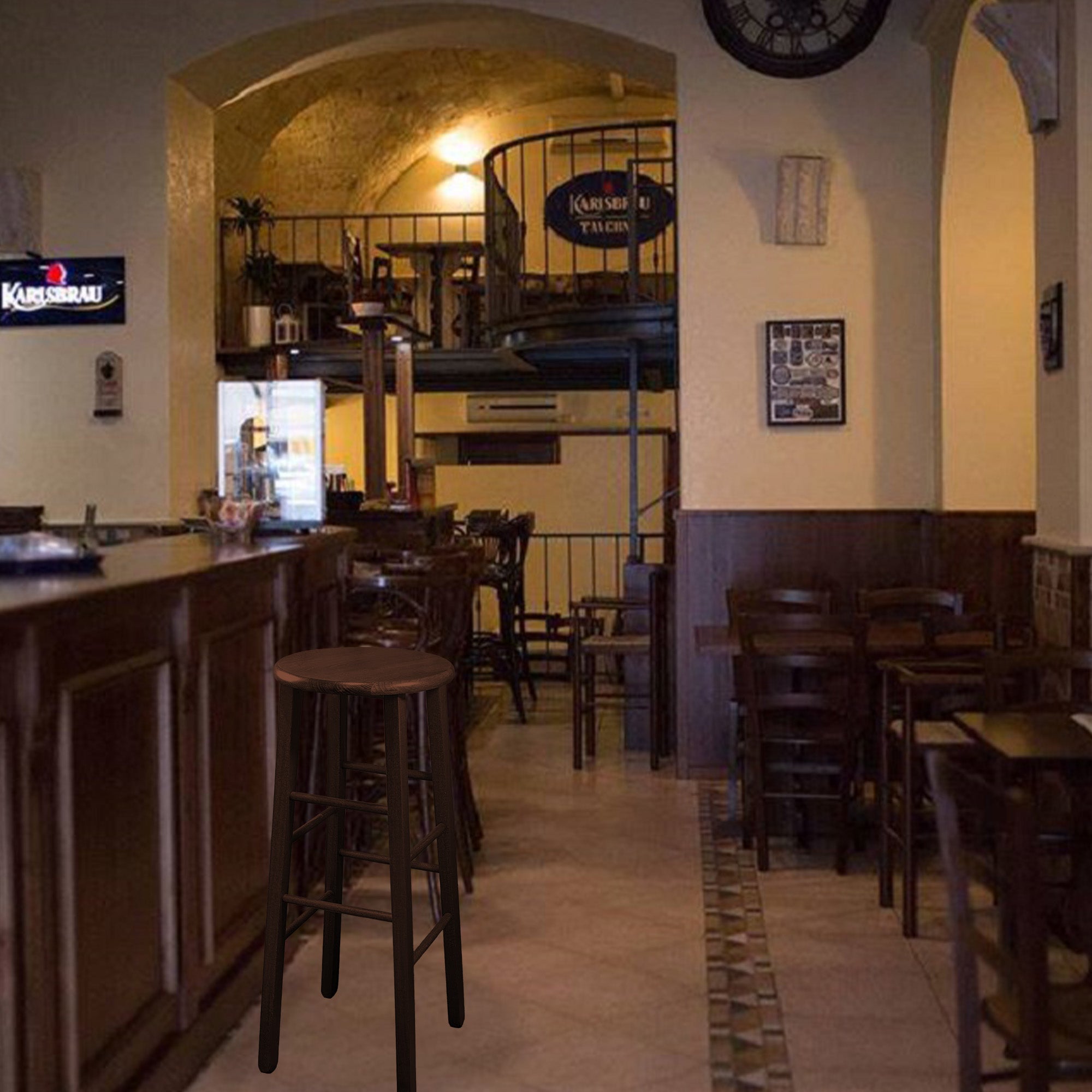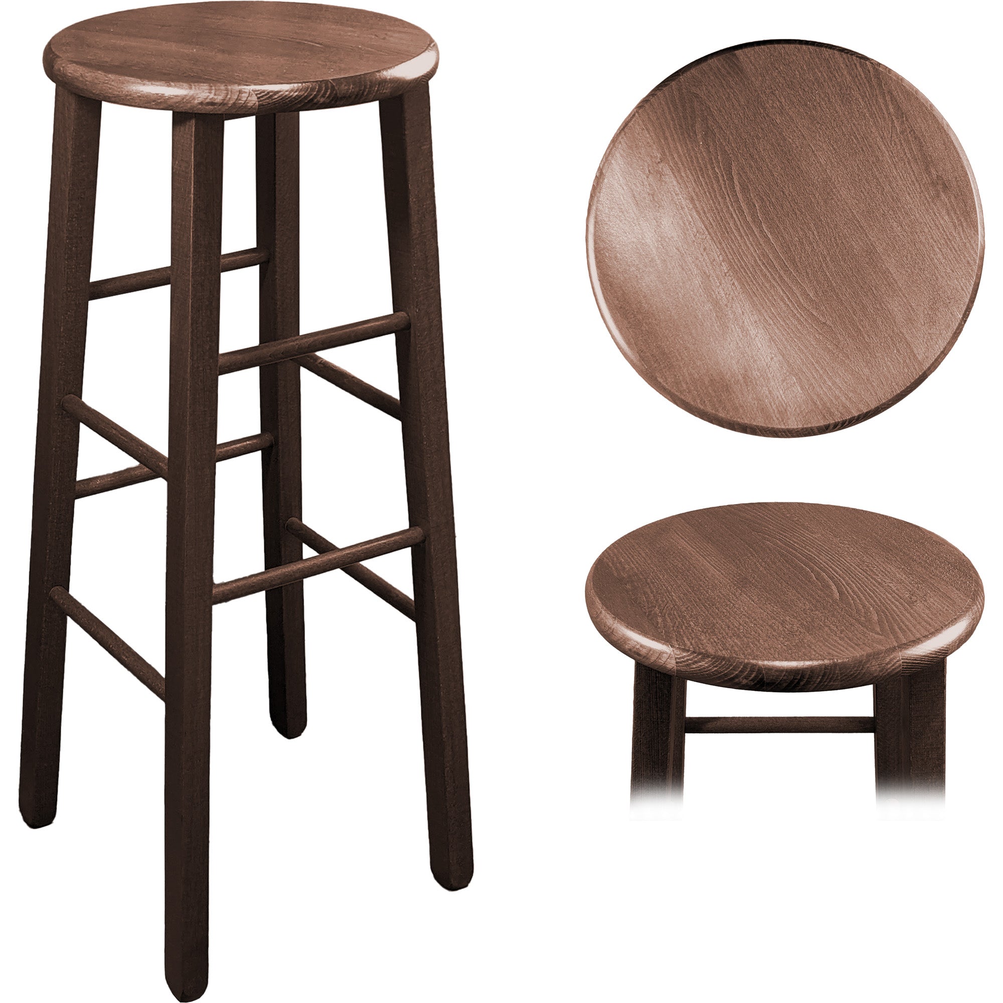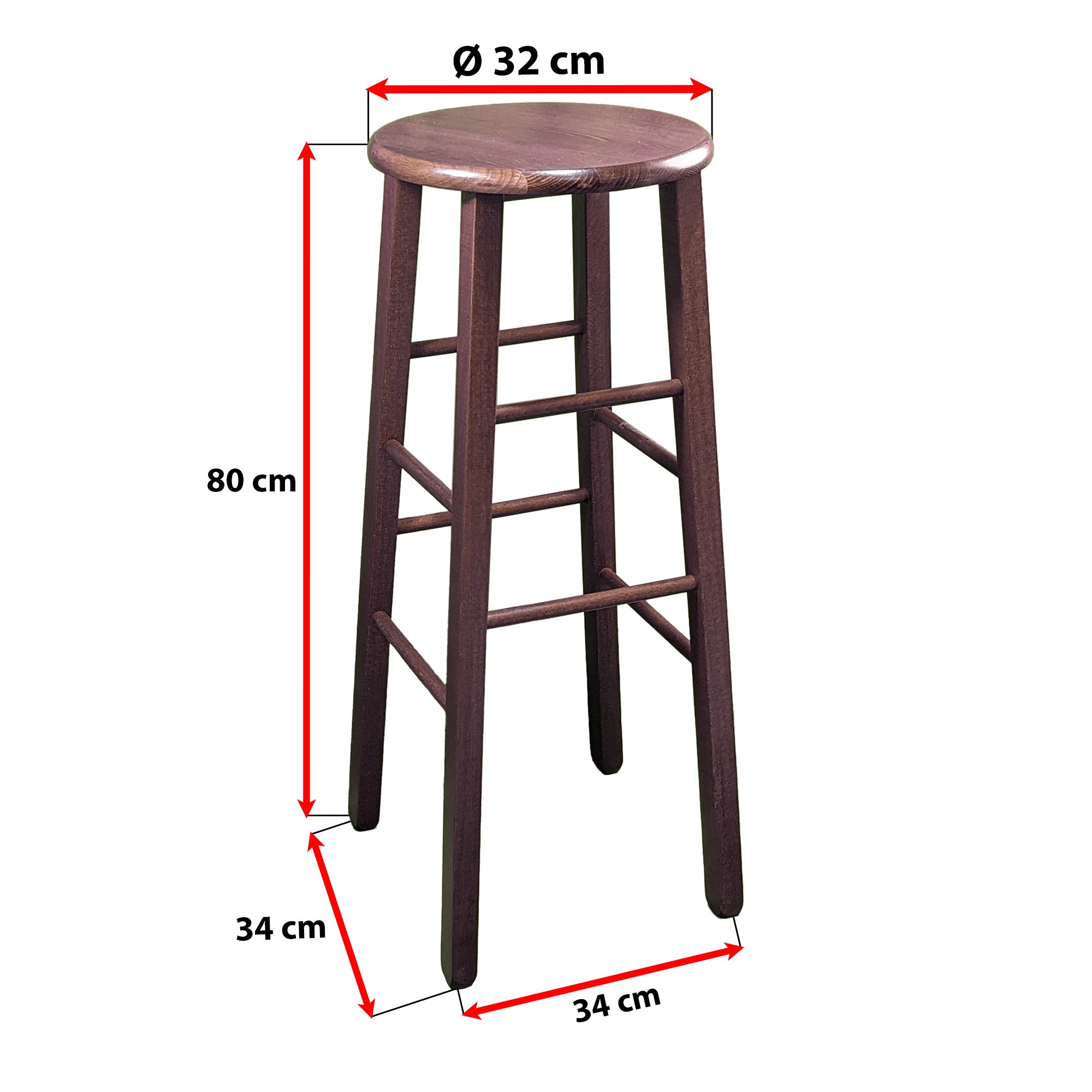Sgabello Tondo in Legno Massello, Piede Dritto, Struttura Stabile e Sicura - Dimensioni Altezza 80x32 cm Diametro Seduta - Noce, Artigianale, per Pub Bar Ristoranti Cucina