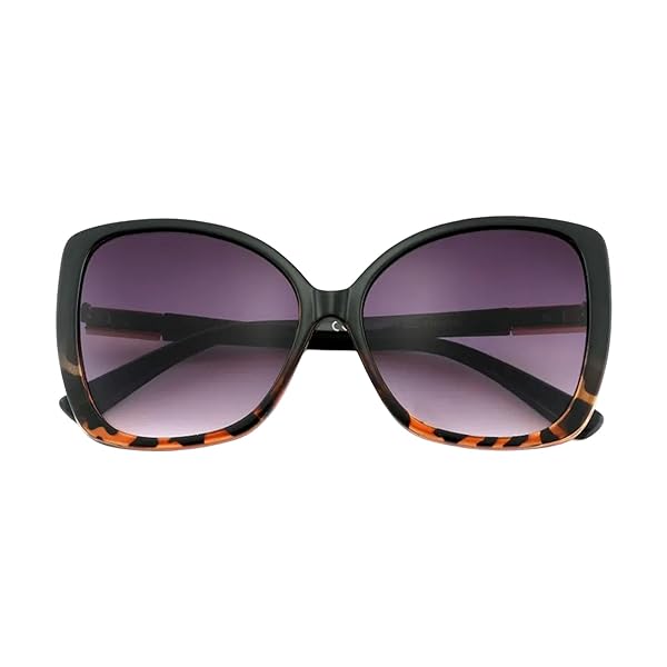 Occhiali da Sole Unisex Lenti Viola Sfumata Montatura Nera con Dettagli Tartarugati Forma Farfalla Oversize Categoria 3 UV400