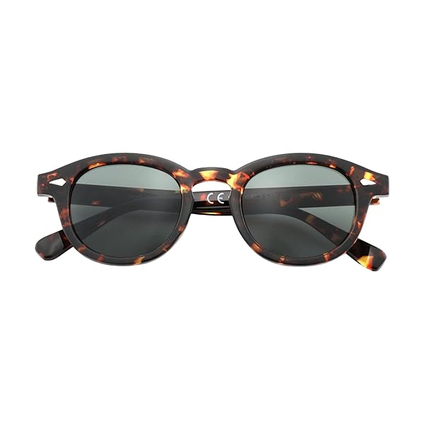 Occhiali da Sole Unisex Lenti Verde Scura Montatura Tartarugata Sottile Forma Tonda Categoria 3 UV400