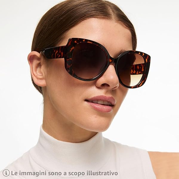 Occhiali da Sole Unisex Lenti Marrone Sfumata Montatura Tartarugata Oversize Forma Quadrata Categoria 3 UV400