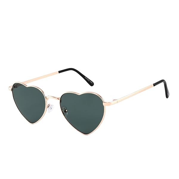 Occhiali da Sole Unisex Lenti Verde Scura Montatura Metallo Oro Forma Cuore Categoria 3 UV400