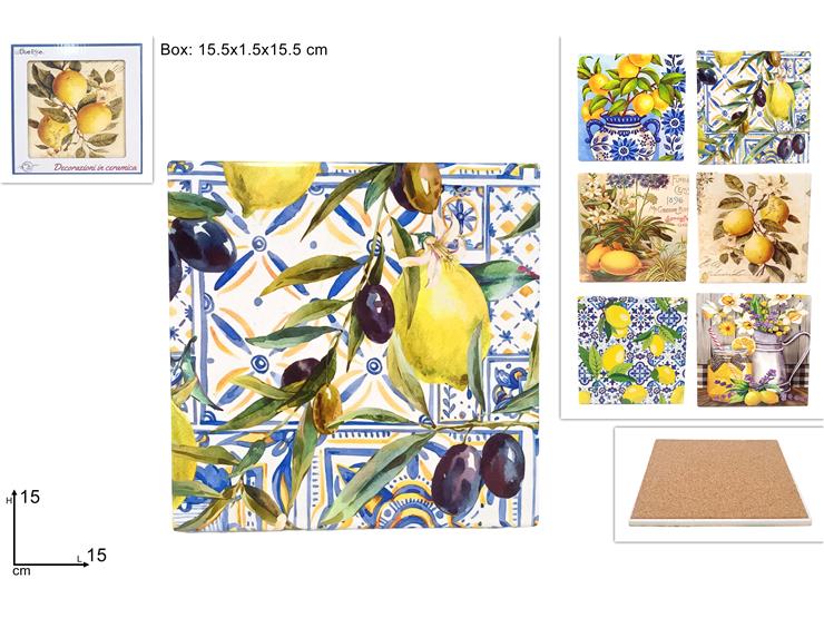 SOTTOPENTOLA BASE SUGHERO QUADRATO CM.15 DEC. LIMONI