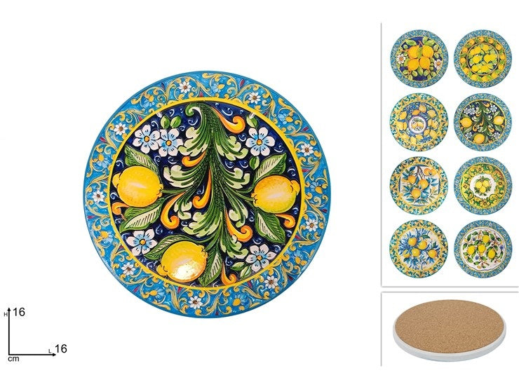 SOTTOPENTOLA TONDO BASE SUGHERO CM.16 DEC. LIMONI