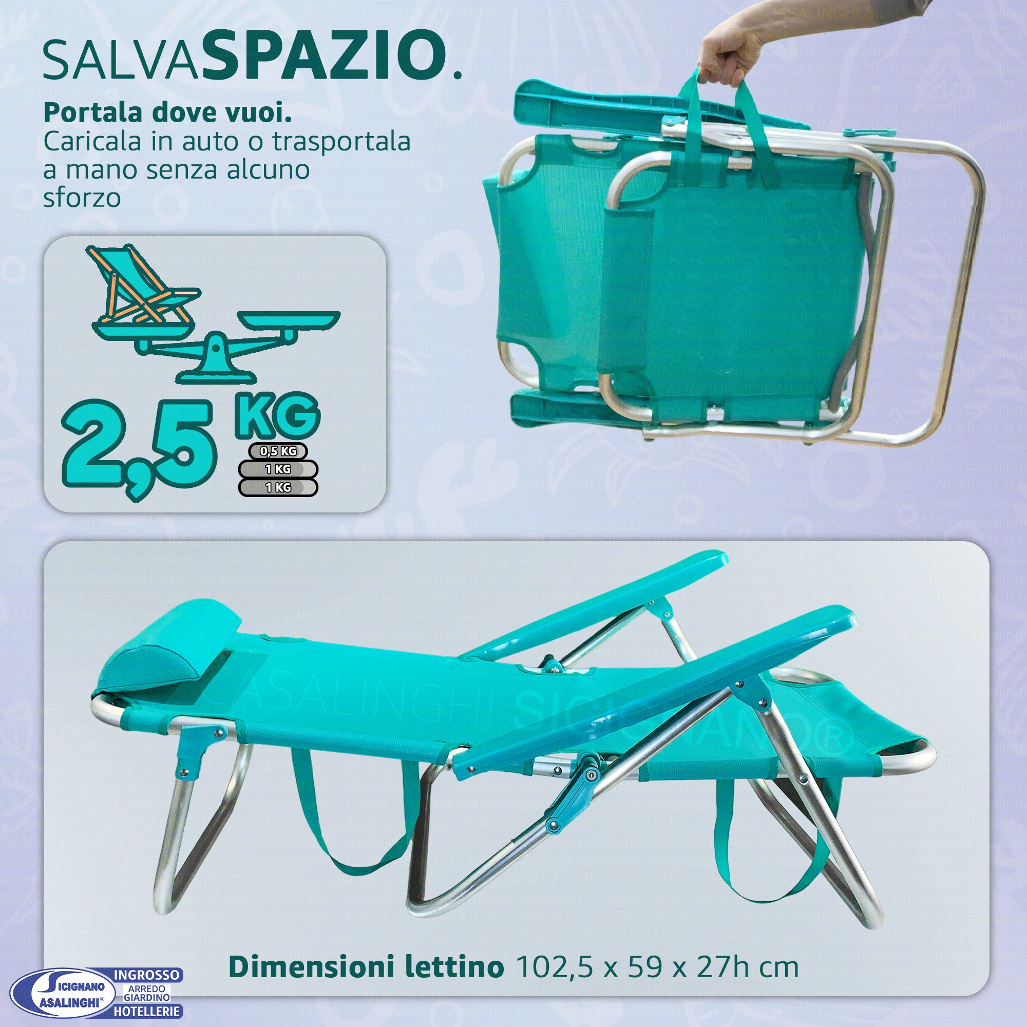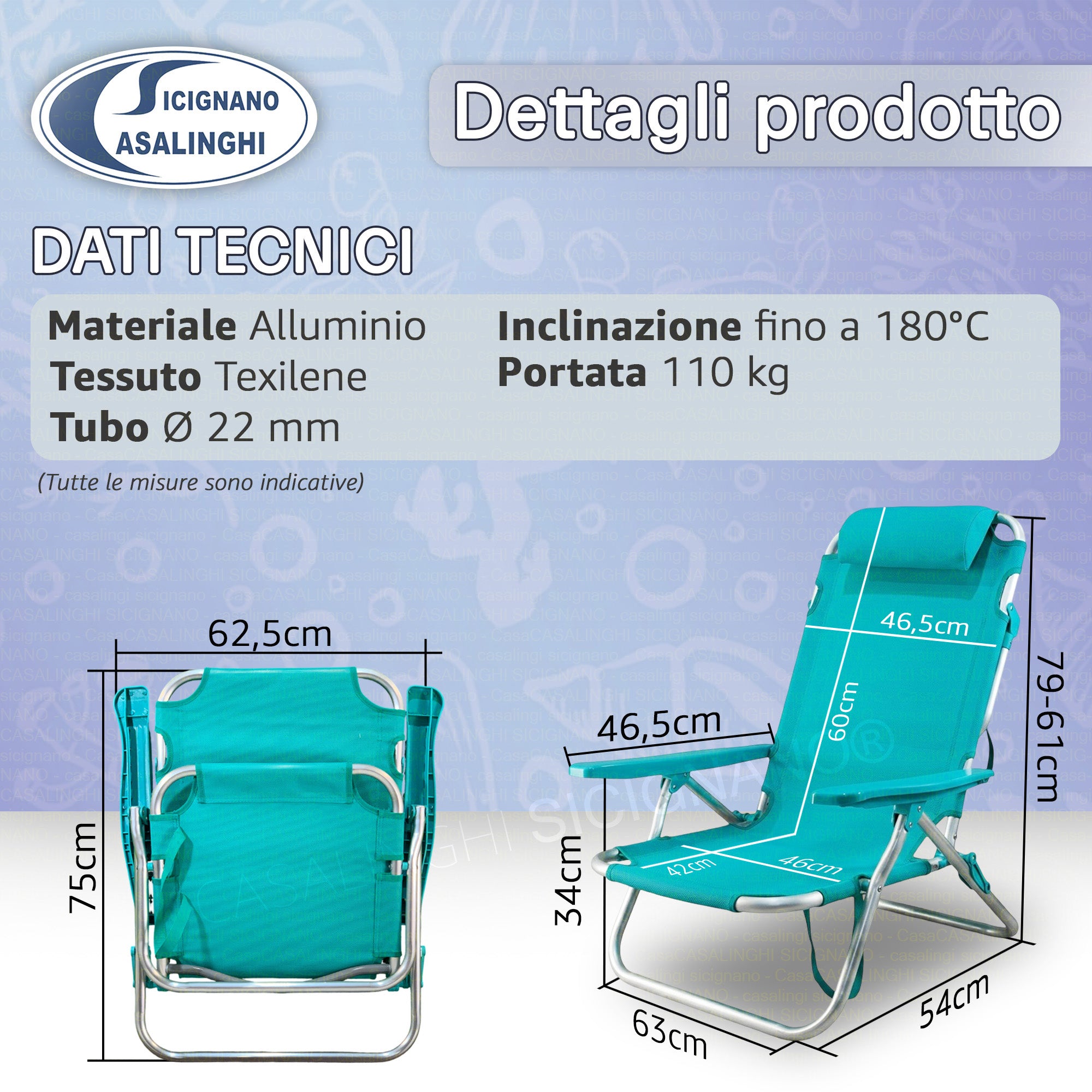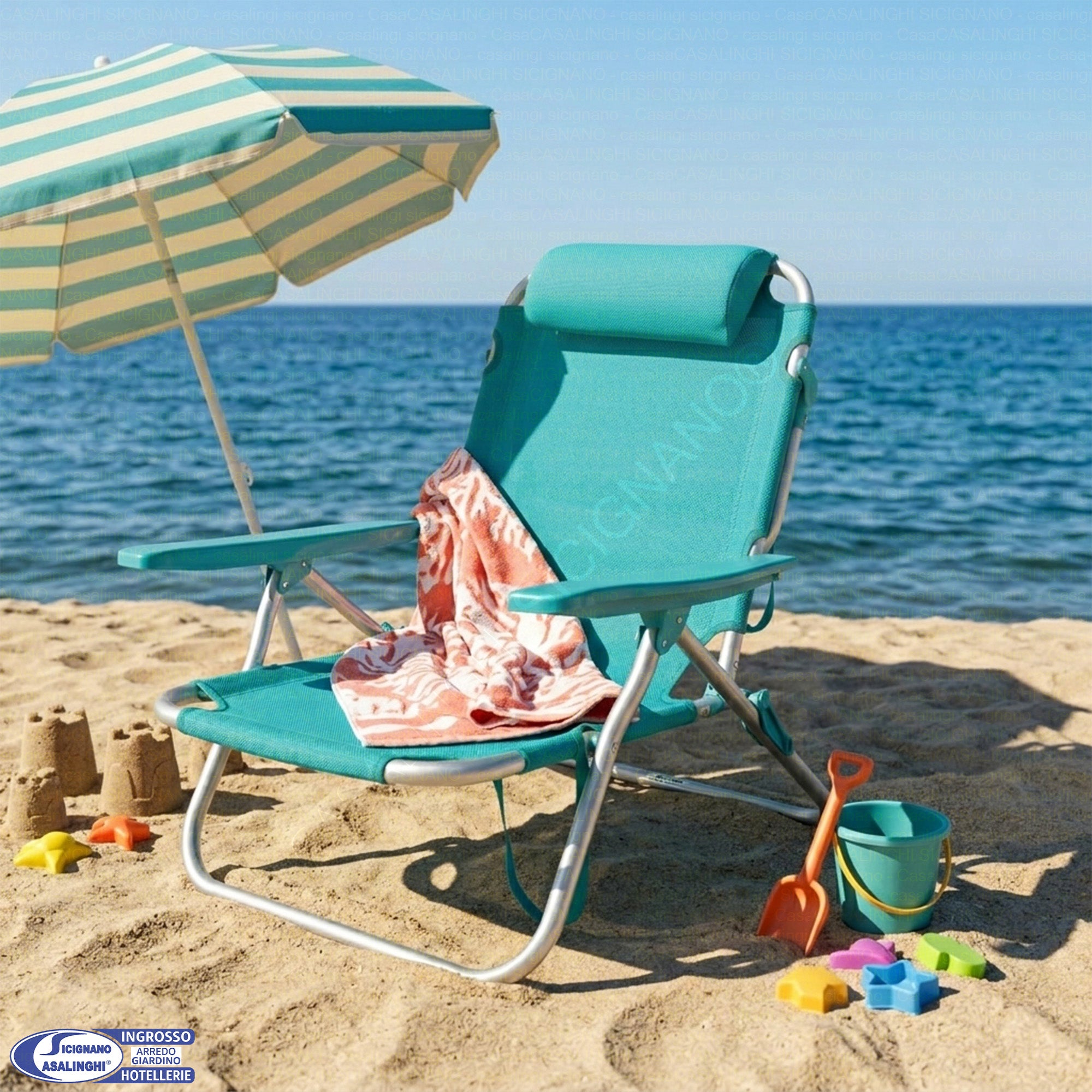 Sdraio Spiaggina Pieghevole Alluminio e Texilene Tubo 22 mm Colore Turchese Max 110 kg | Colore Turchese e Blu