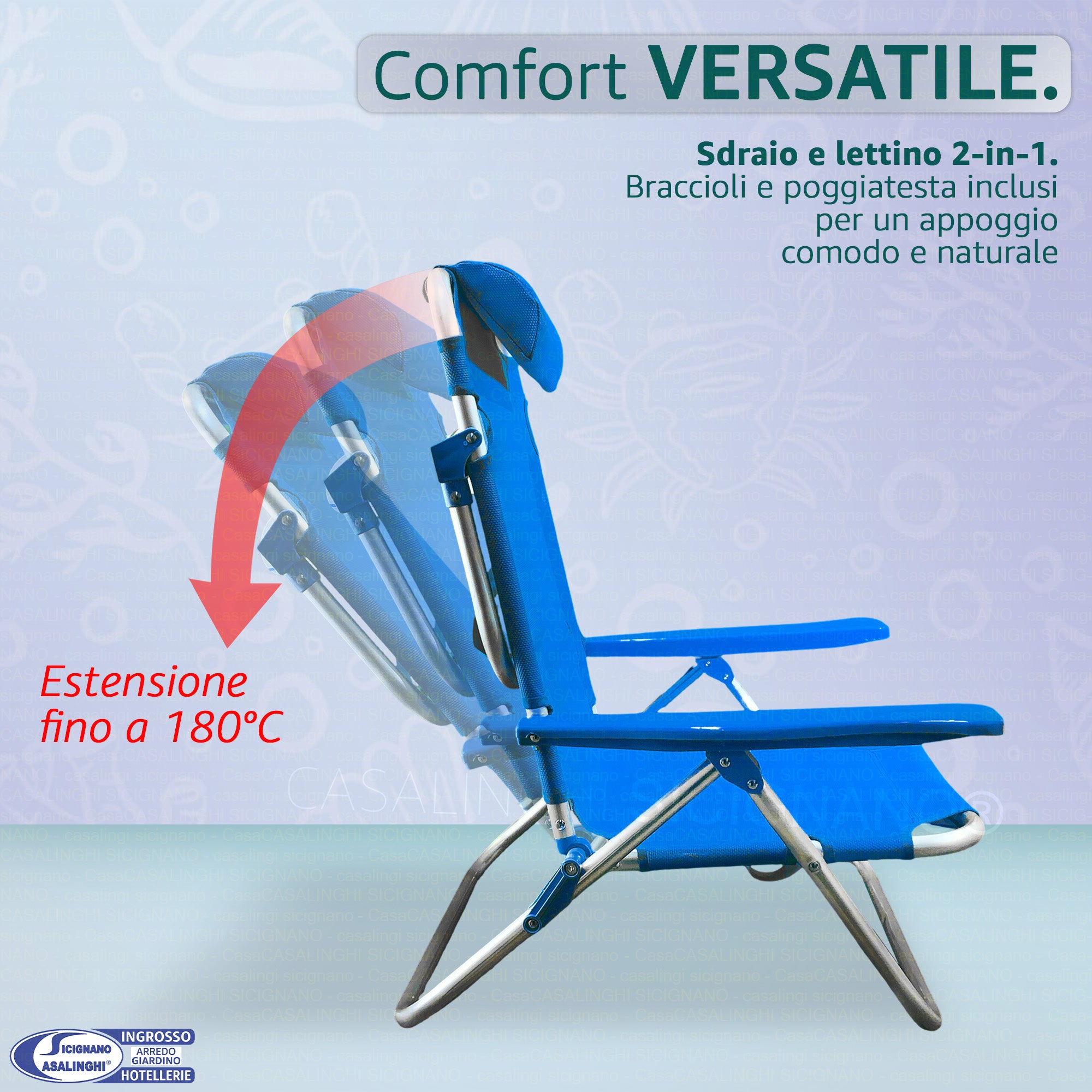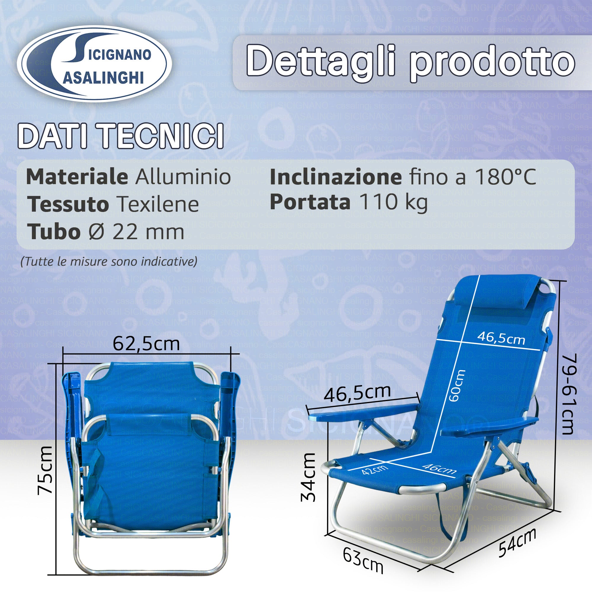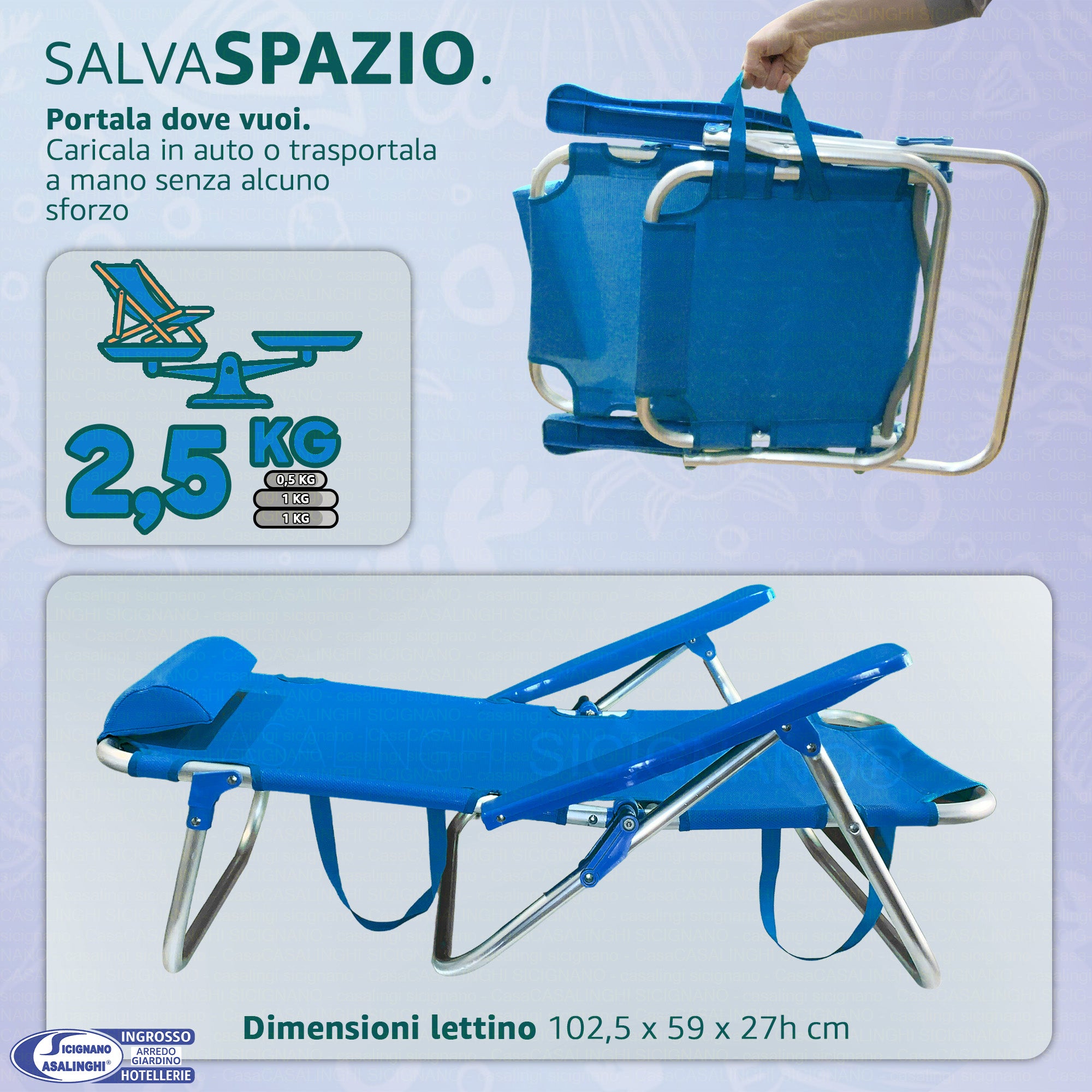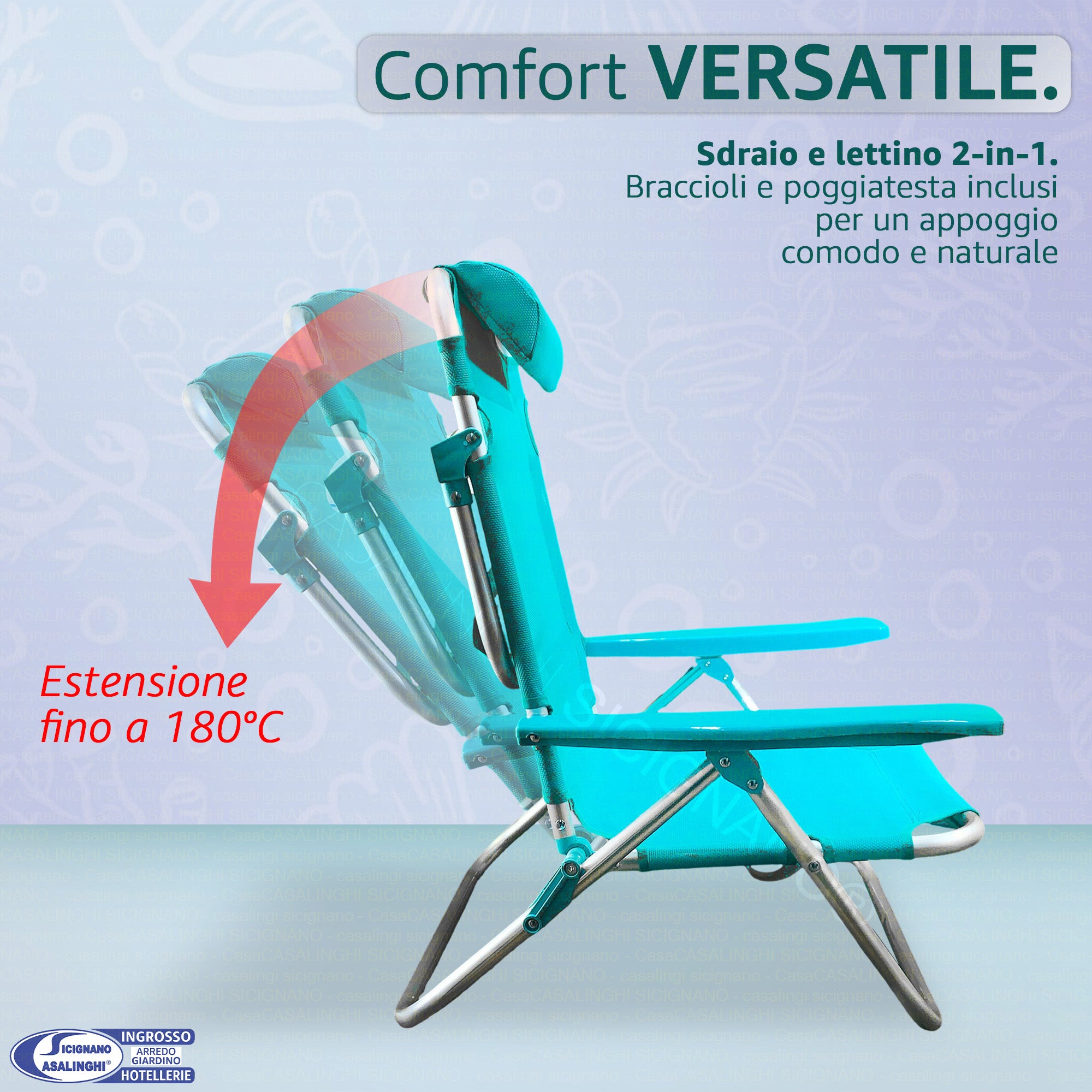 Sdraio Spiaggina Pieghevole Alluminio e Texilene Tubo 22 mm Colore Turchese Max 110 kg | Colore Turchese e Blu