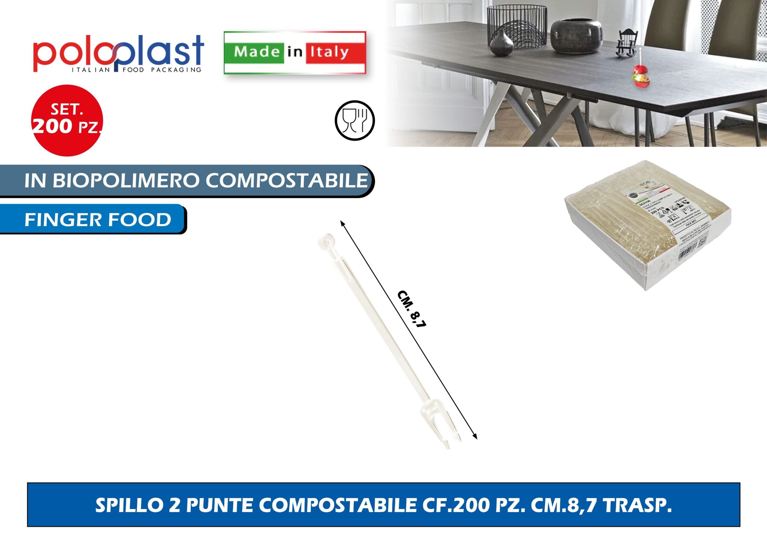 Poloplast Spillo 2 Punte Compostabile Cf.200 Pz. Cm.8,7 Trasp.