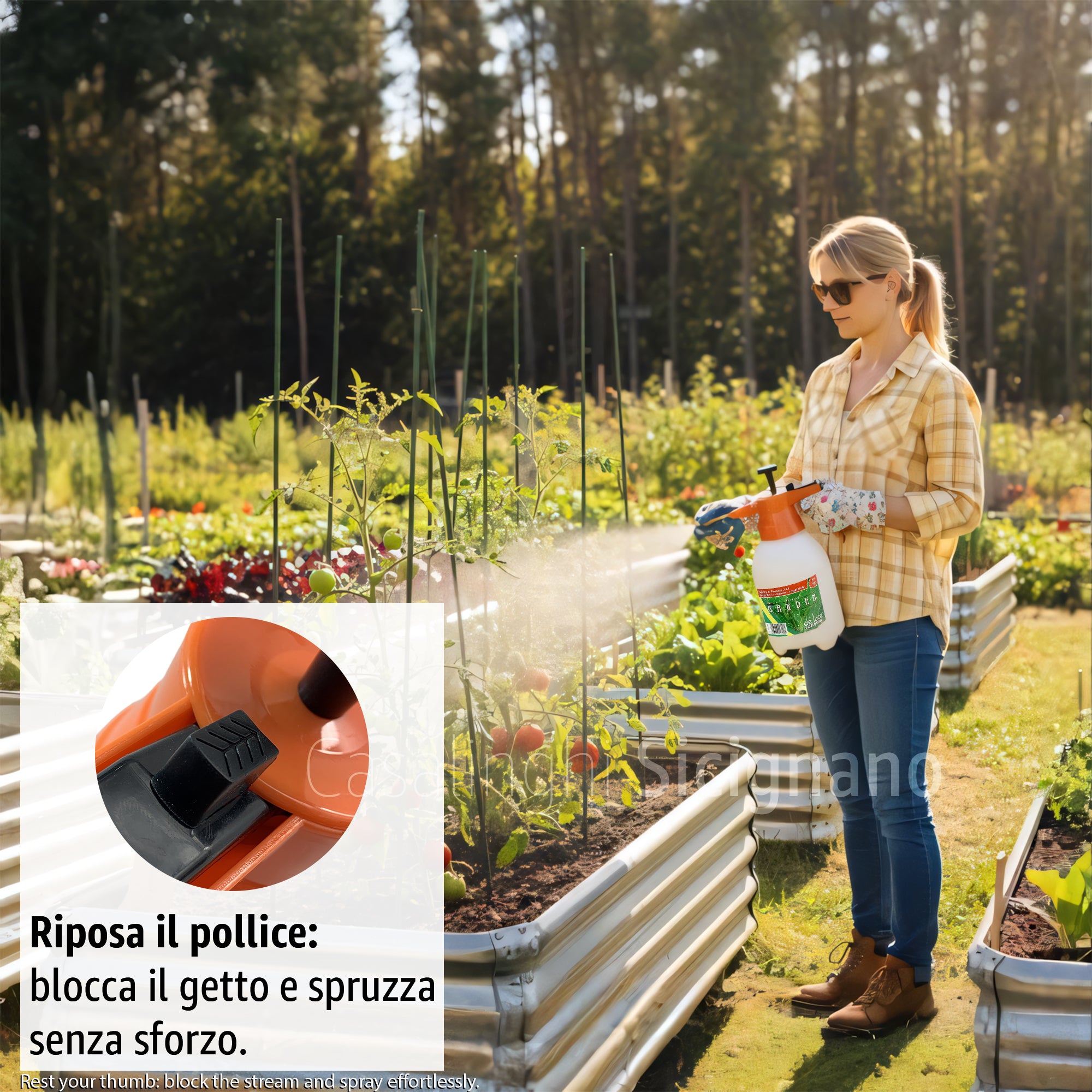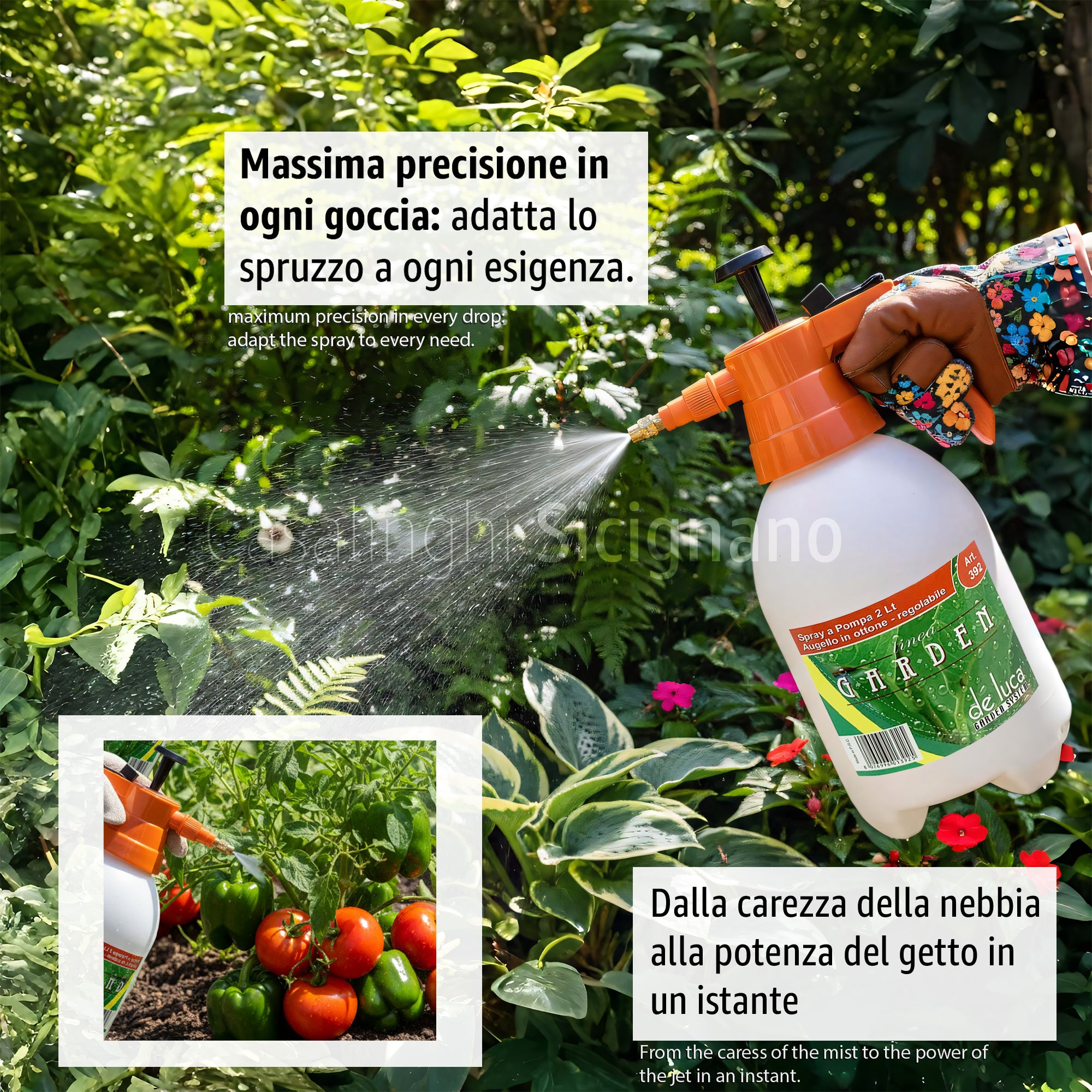 Spruzzatore a Pressione 2L DE LUCA Linea Garden – Pompa Manuale con Ugello in Ottone Regolabile e Grilletto con Blocco