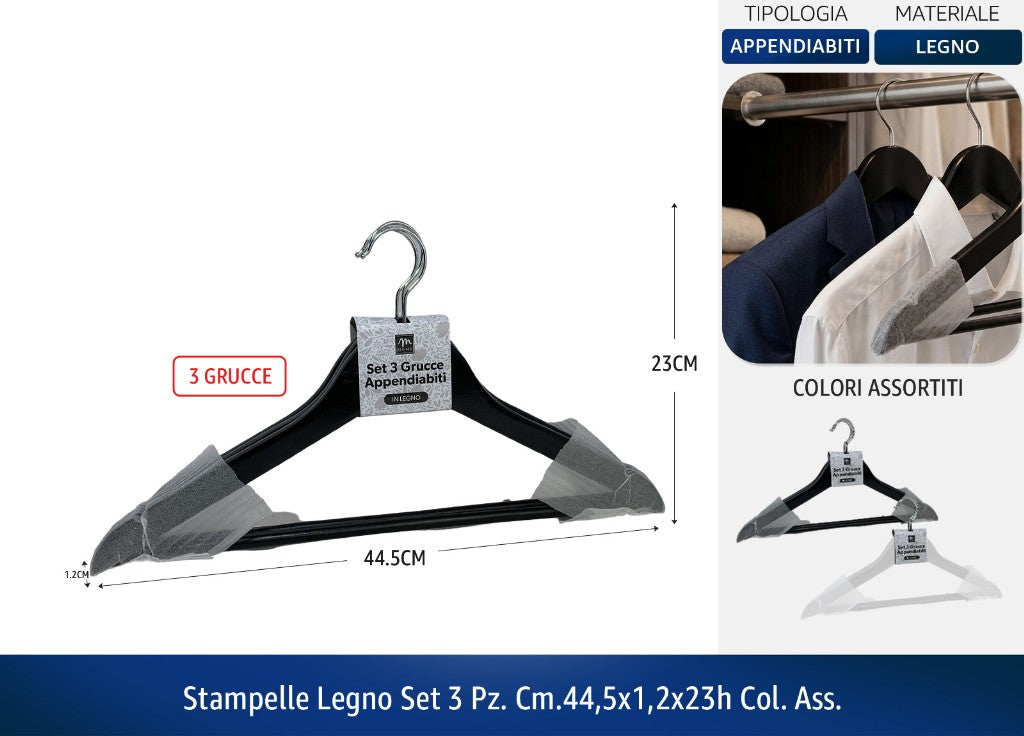 Stampelle Legno Set 3 Pz. Cm.44,5X1,2X23H Col. Ass.