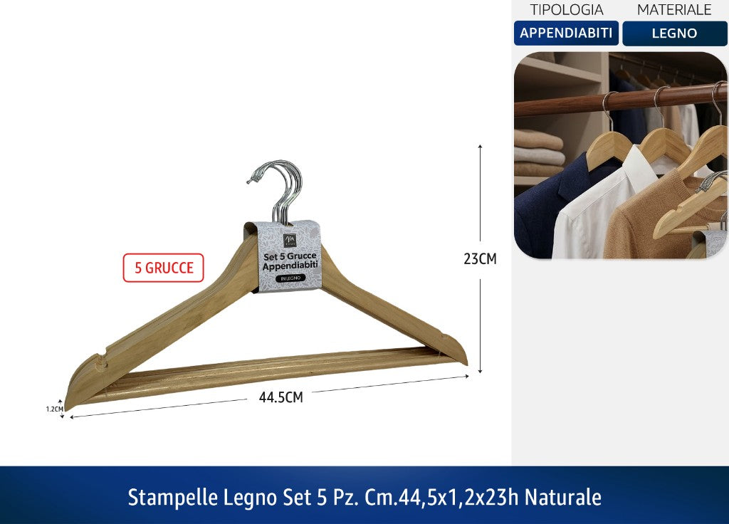 Stampelle Legno Set 5 Pz. Cm.44,5X1,2X23H Naturale