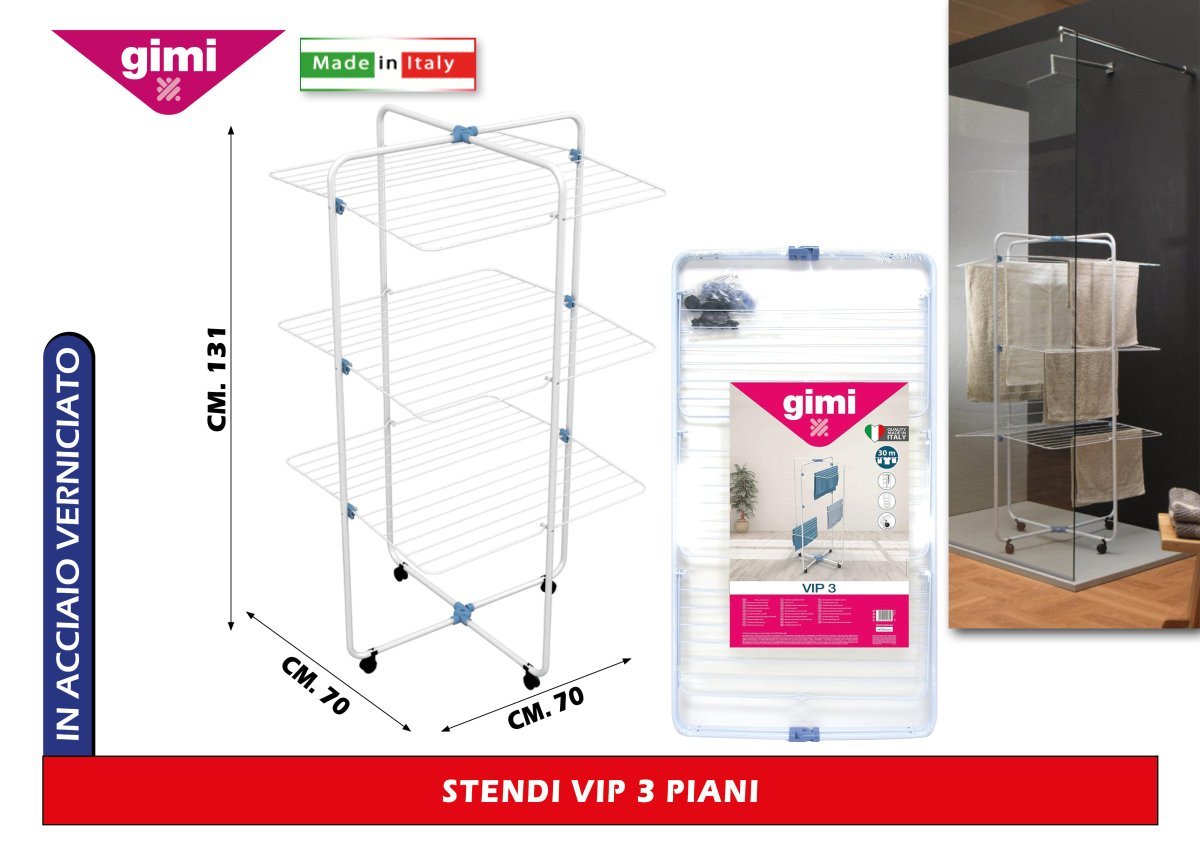 Gimi Stendibiancheria Verticale Salvaspazio a 3 Piani - 30m di Stenditura