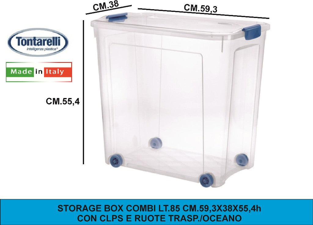 STORAGE BOX COMBI LT.85 CM.59,3X38X55,4h CON CLPS E RUOTE TRASP./OCEANO