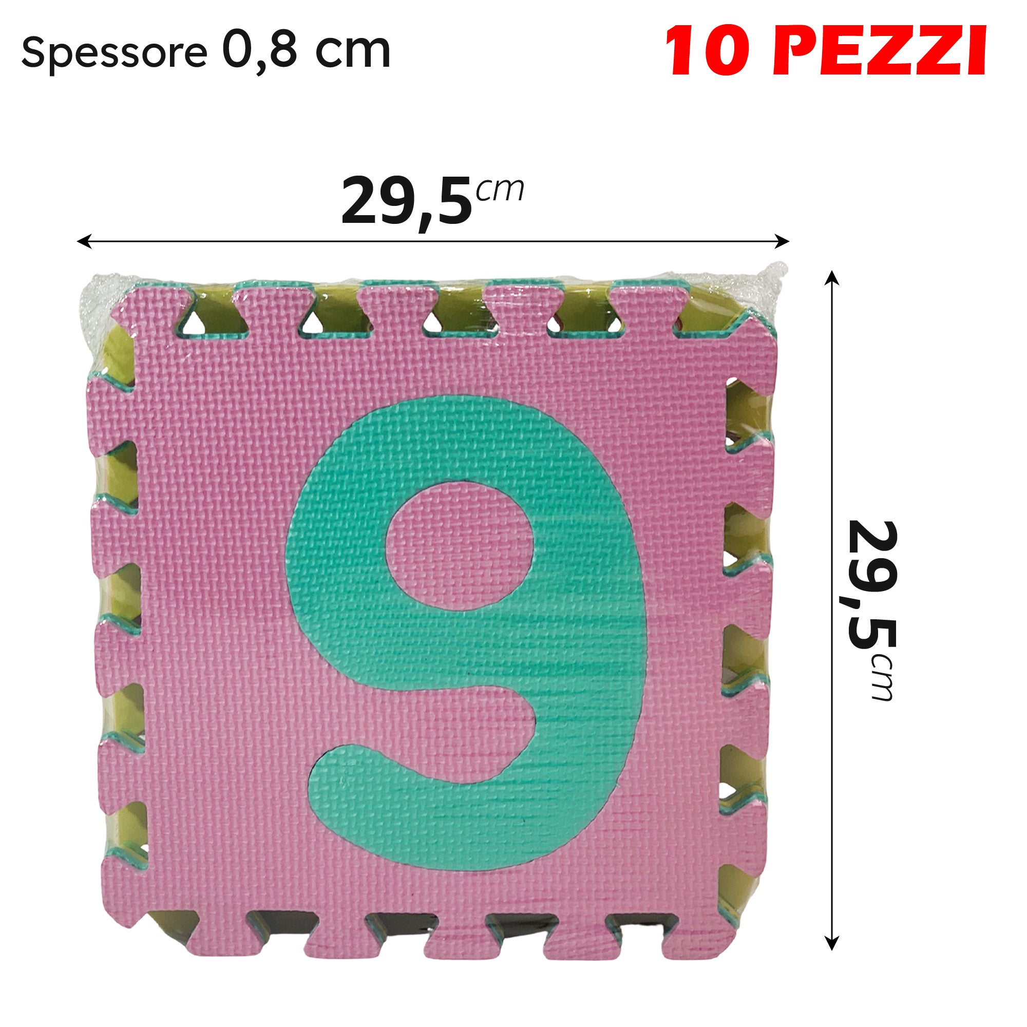 Tappeto Puzzle Morbido per Bambini 10 Pezzi, Numeri Colorati 29,5x29,5cm