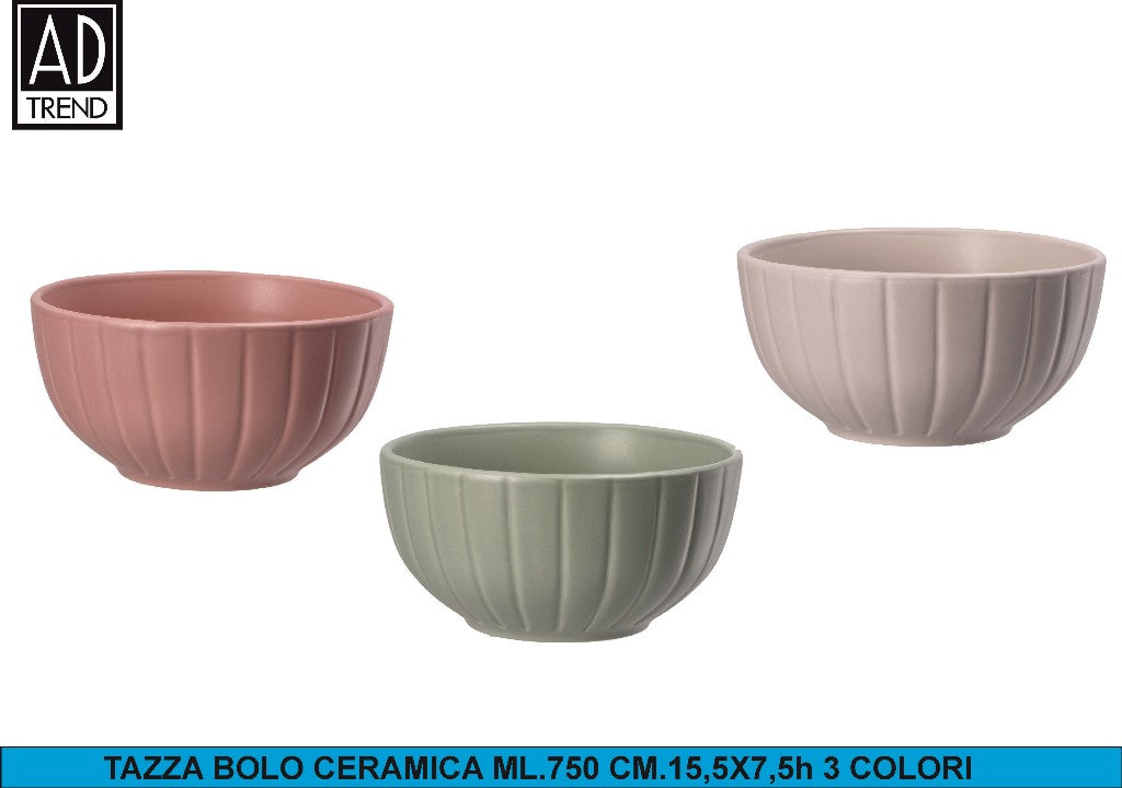 Tazza Bolo Ceramica Ml.750 Cm.15,5X7,5H 3 Colori