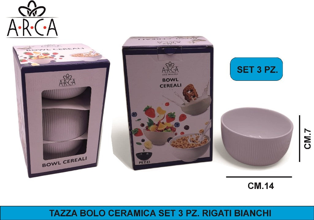 TAZZA BOLO CERAMICA SET 3 PZ. RIGATI BIANCHI