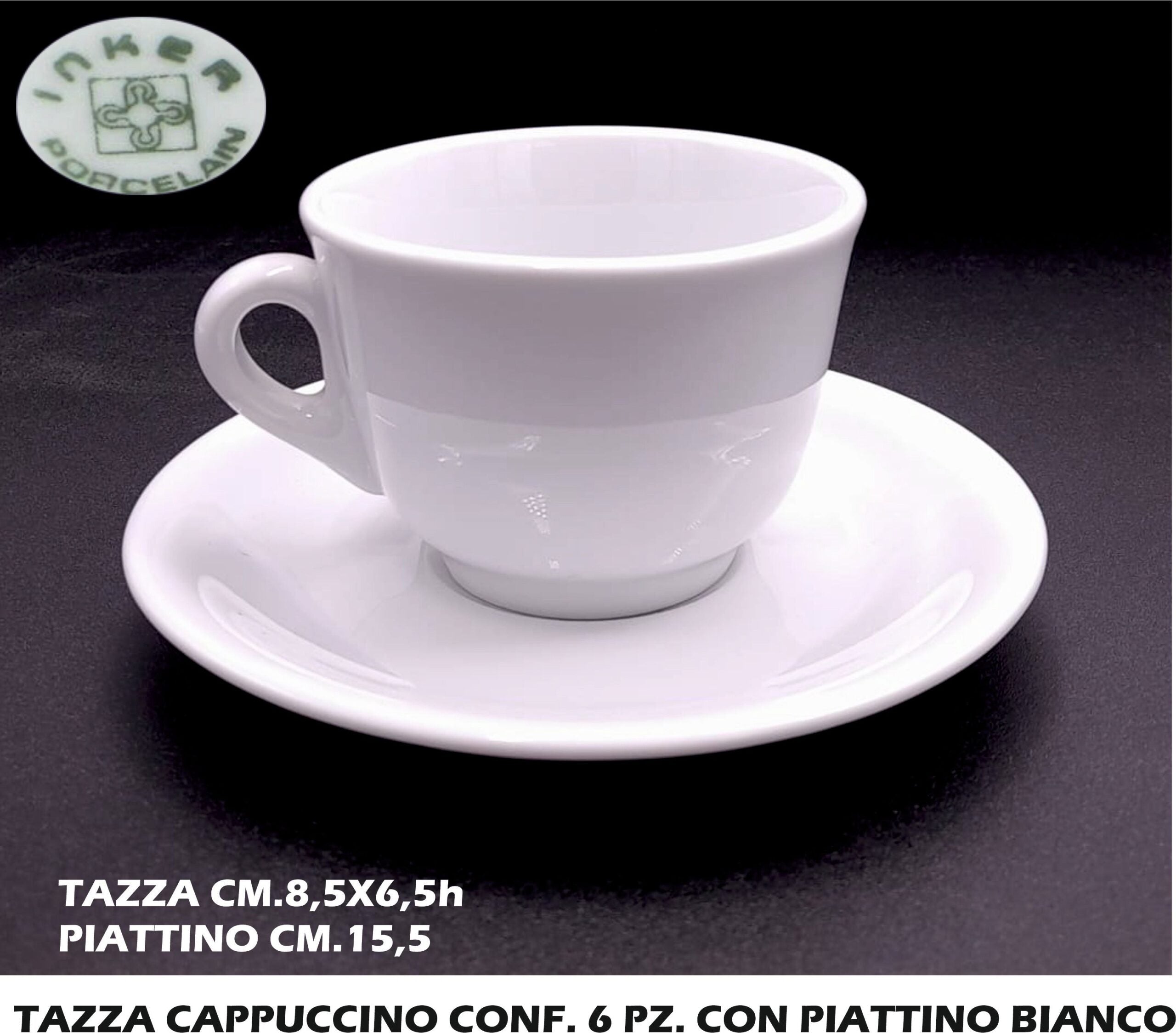 Tazza Cappuccino Conf. 6 Pz. C/Piatt. Bianco