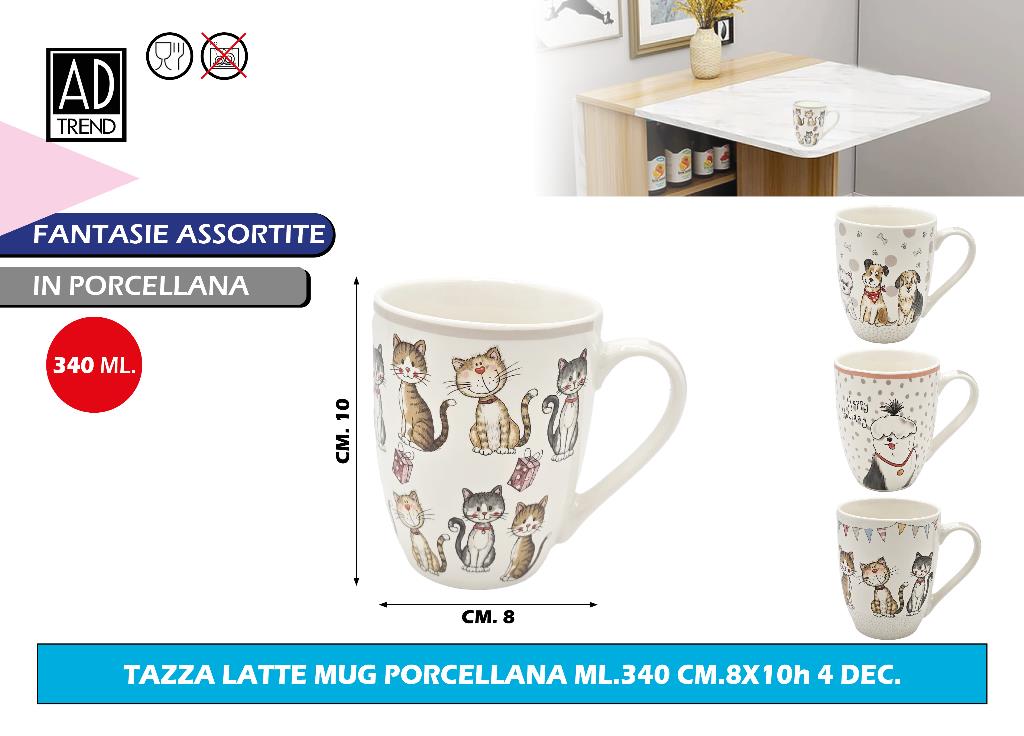 Tazza Latte Mug Porcellana Ml.340 Cm.8X10H 4 Dec.