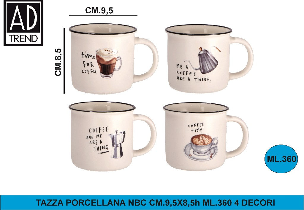 Tazza Porcellana Nbc Cm.9,5X8,5H Ml.360 4 Decori