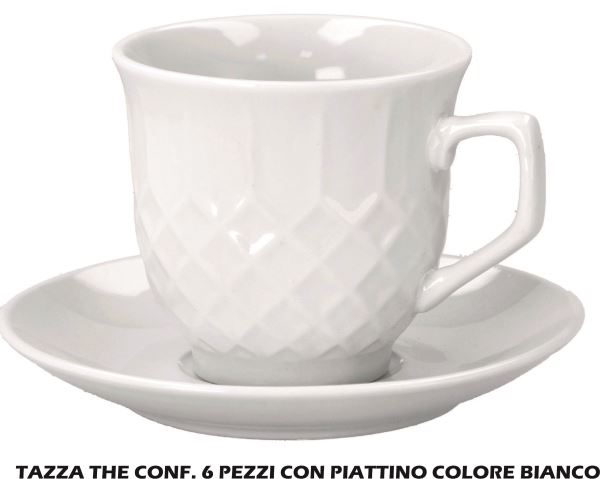 Tazza The Porcellana Set 6 Pz. C/Piatt. Bianca