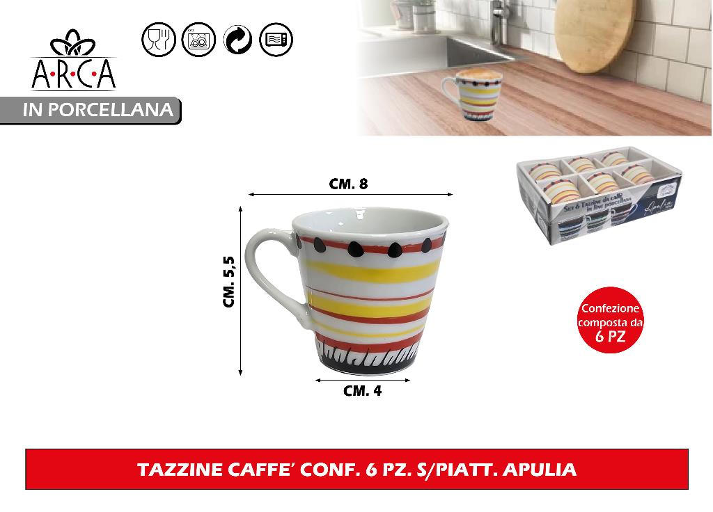 Arca TAZZINE CAFFE' CONF. 6 PZ. S/PIATT. APULIA
