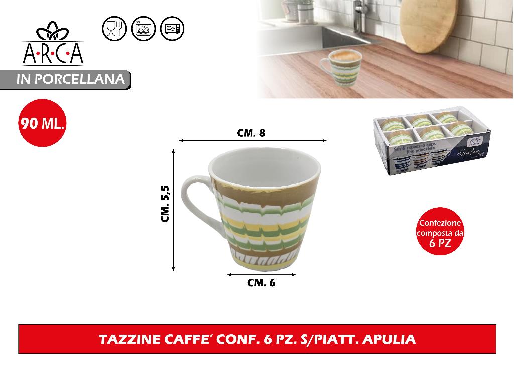 Arca TAZZINE CAFFE' CONF. 6 PZ. S/PIATT. APULIA