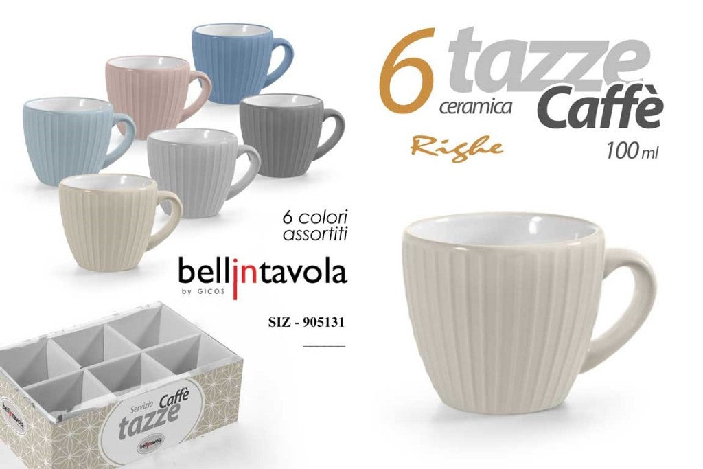 Tazzine Caffe' Conf. 6 Pz. S/Piatt. Col. Ass.