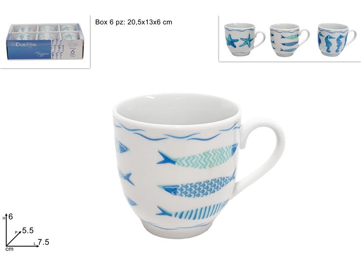 Tazzine Caffe' Conf. 6 Pz. S/Piatt. Dec. Marine 3 Ass.