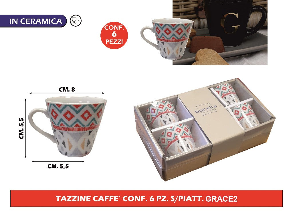 Tazzine Caffe' Conf. 6 Pz. S/Piatt. Grace2