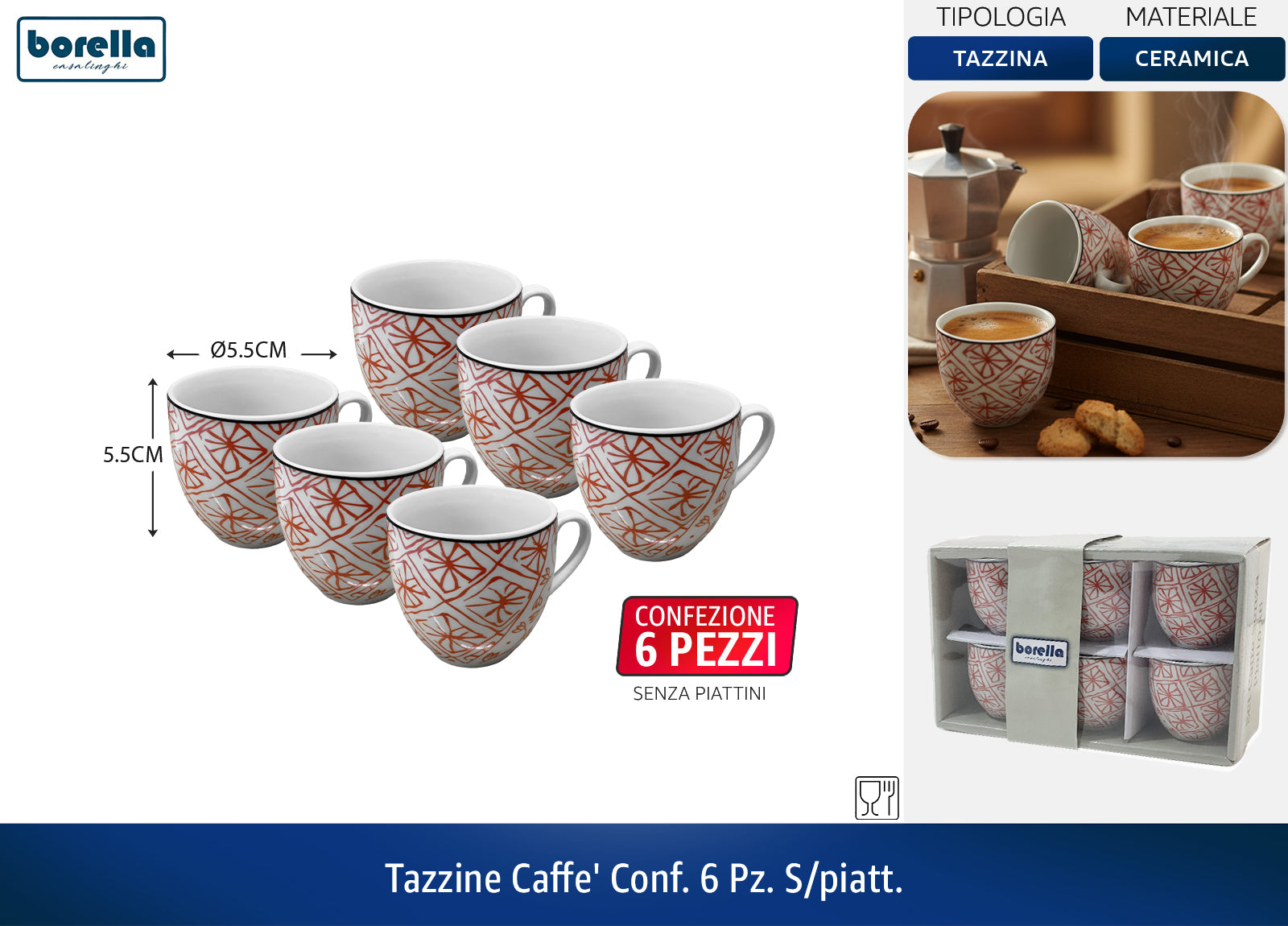 Tazzine Caffe' Conf. 6 Pz. S/Piatt. Rodi