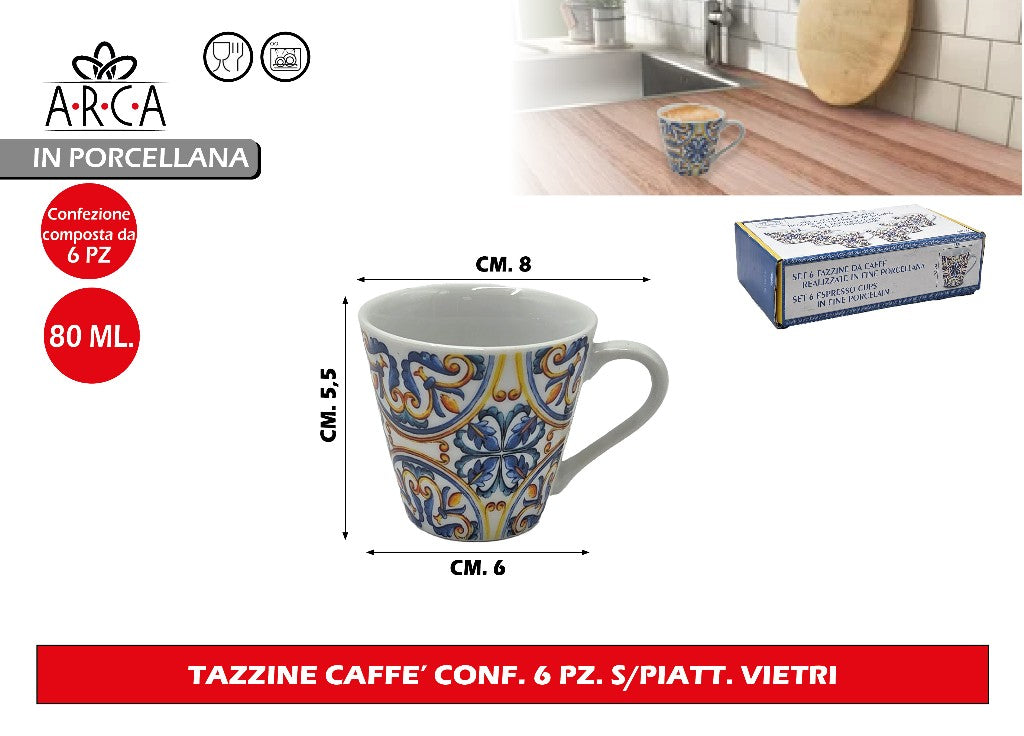 Arca TAZZINE CAFFE' CONF. 6 PZ. S/PIATT. VIETRI