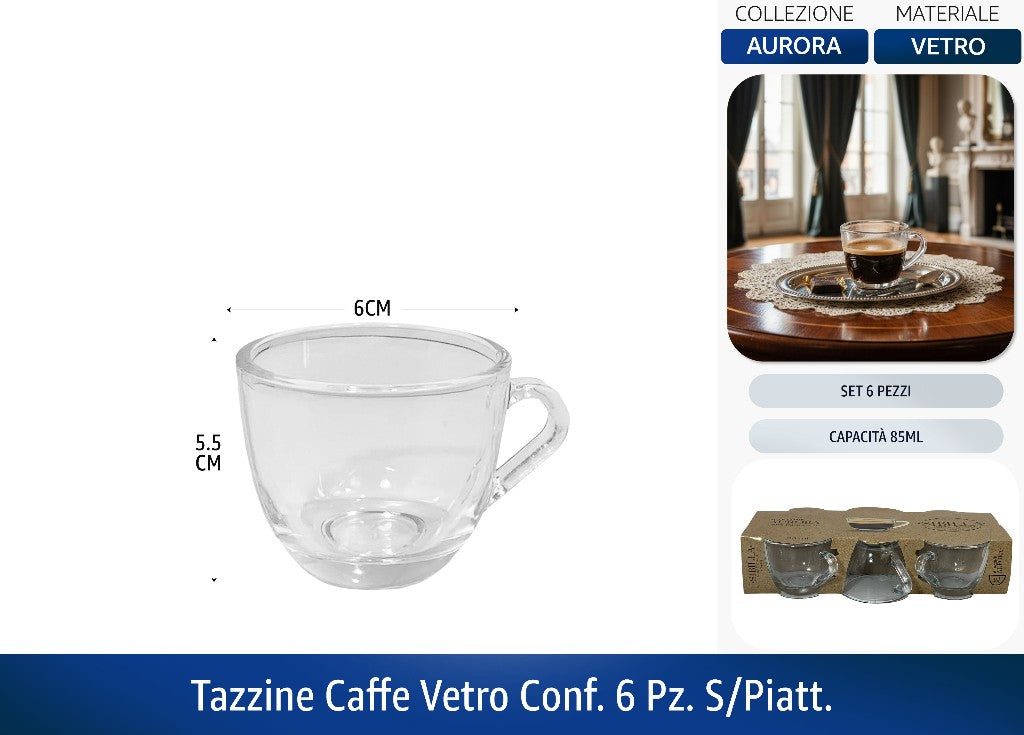 Tazzine Caffe Vetro Conf. 6 Pz. S/Piatt