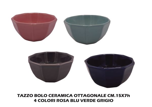 TAZZO BOLO CERAMICA OTTAGONALE CM.15X7h 4 COLORI