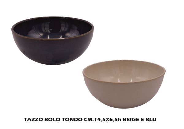 TAZZO BOLO TONDO CM.14,5X6,5h BEIGE E BLU