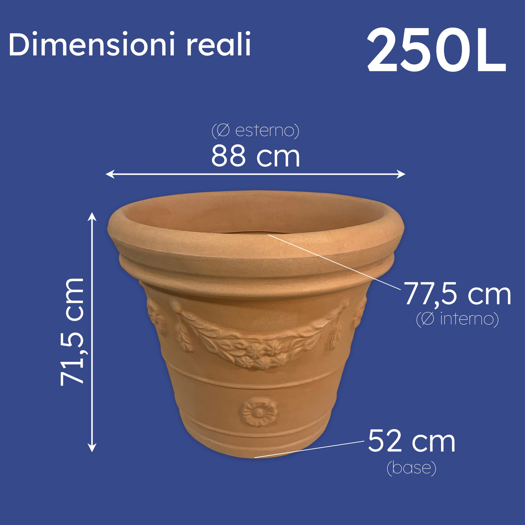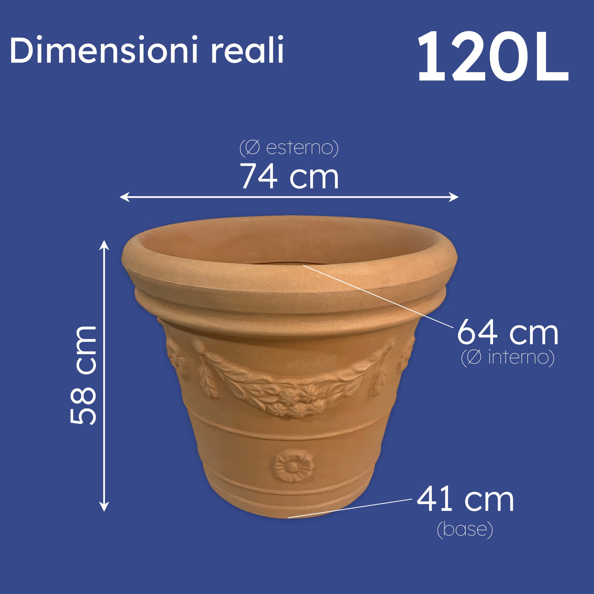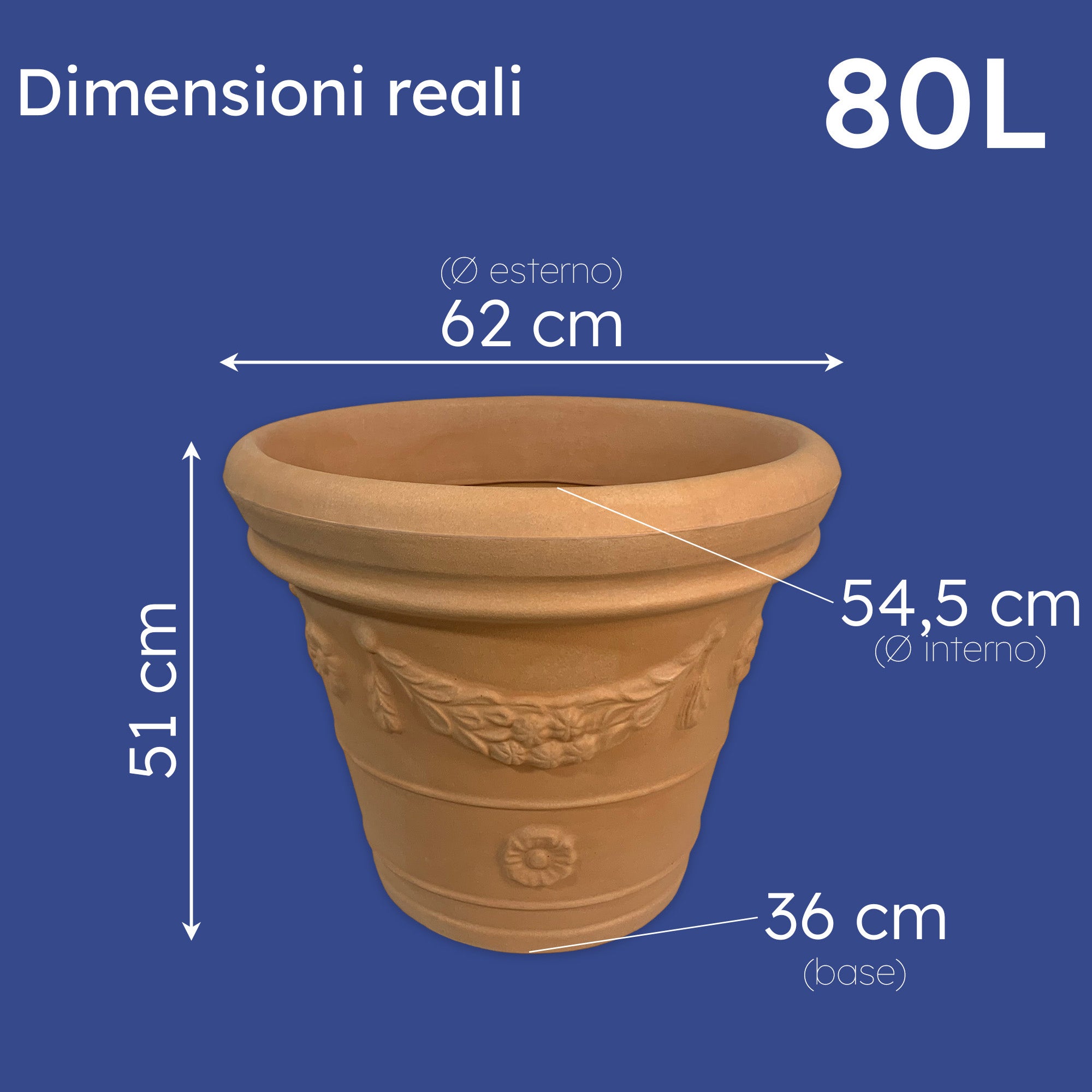 estetica classica: il design impruneta è senza tempo, conferendo al vaso un aspetto maestoso e tradizionale che si adatta perfettamente a qualsiasi stile di arredo esterno, dal più rustico al più elegante.