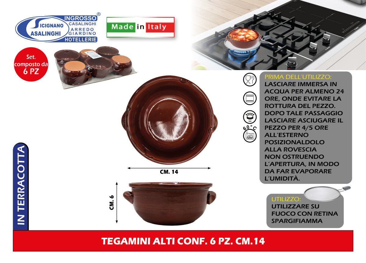 Casalinghi Sicignano Tegamini in Terracotta Alti, Set 6 Pezzi Ø 14 Cm H 6 Cm – Ideali per Porzioni Singole, Antipasti E Dessert