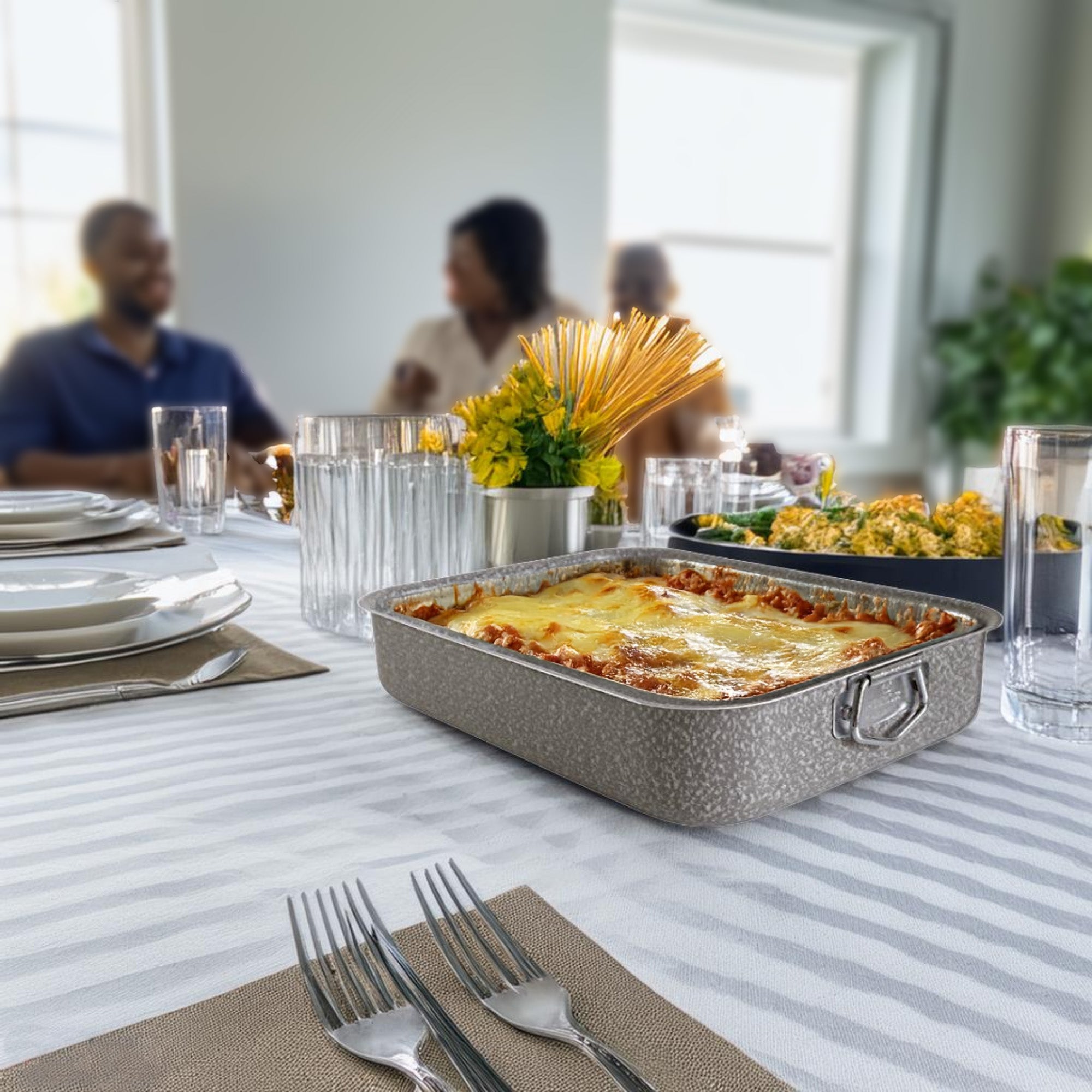 Teglia Lasagnera In Alluminio Antiaderente Cm.25X18X6H Con Maniglie Laterali - Bordo Alto, Cottura Uniforme E Lavabile In Lavastoviglie