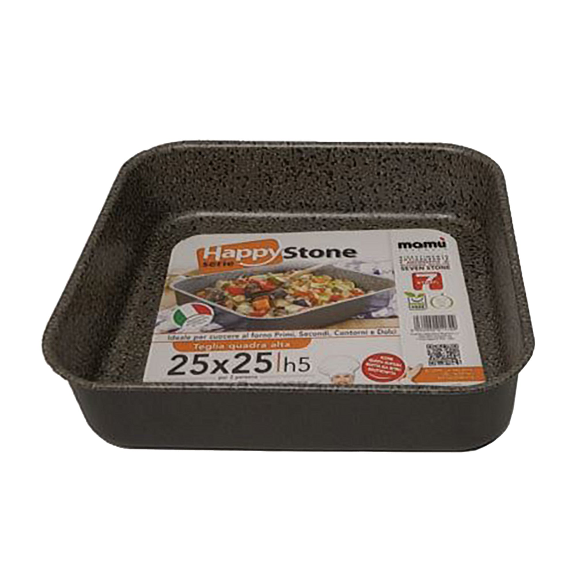 Teglia Da Forno In Alluminio Antiaderente Happy Stone Cm.25X25X5H Ottima Per Casa E Compatibile Con Forno Elettrico E Gas