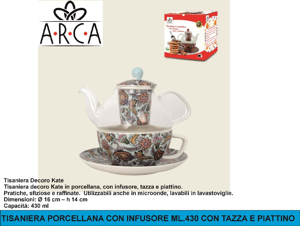 TISANIERA PORCELLANA CON INFUSORE ML.430 CON TAZZA E PIATTINO