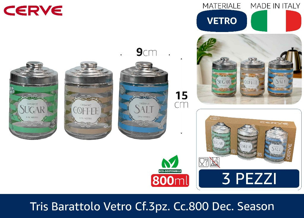 Cerve TRIS BARATTOLO VETRO CF.3PZ. CC.800 DEC.SEASON
