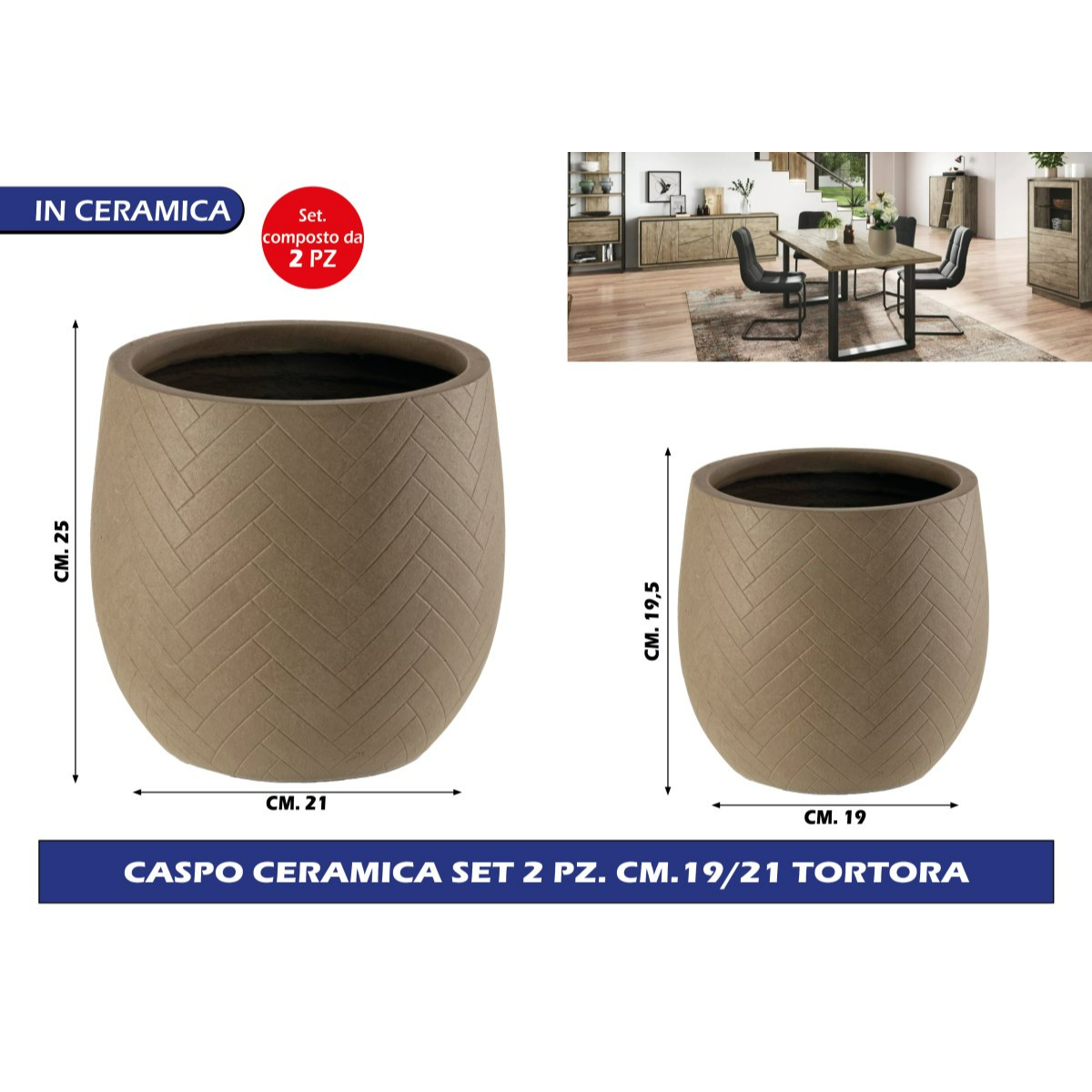 VASO CASPO' CERAMICA SET 2 PZ. CM.19/21 TORTORA