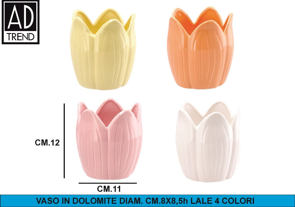 Vaso In Dolomite Diam. Cm.11X12H Lale 4 Colori