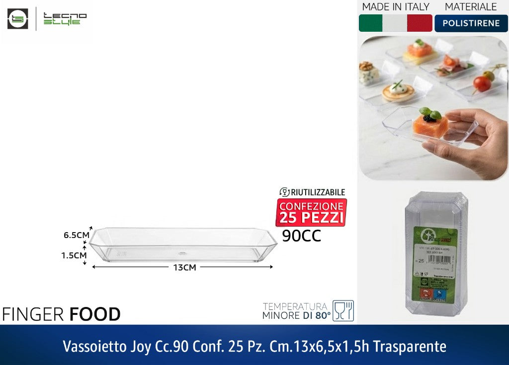VASSOIETTO JOY CC.90 CONF. 25 PZ. CM.13X6,5X1,5h TRASPARENTE