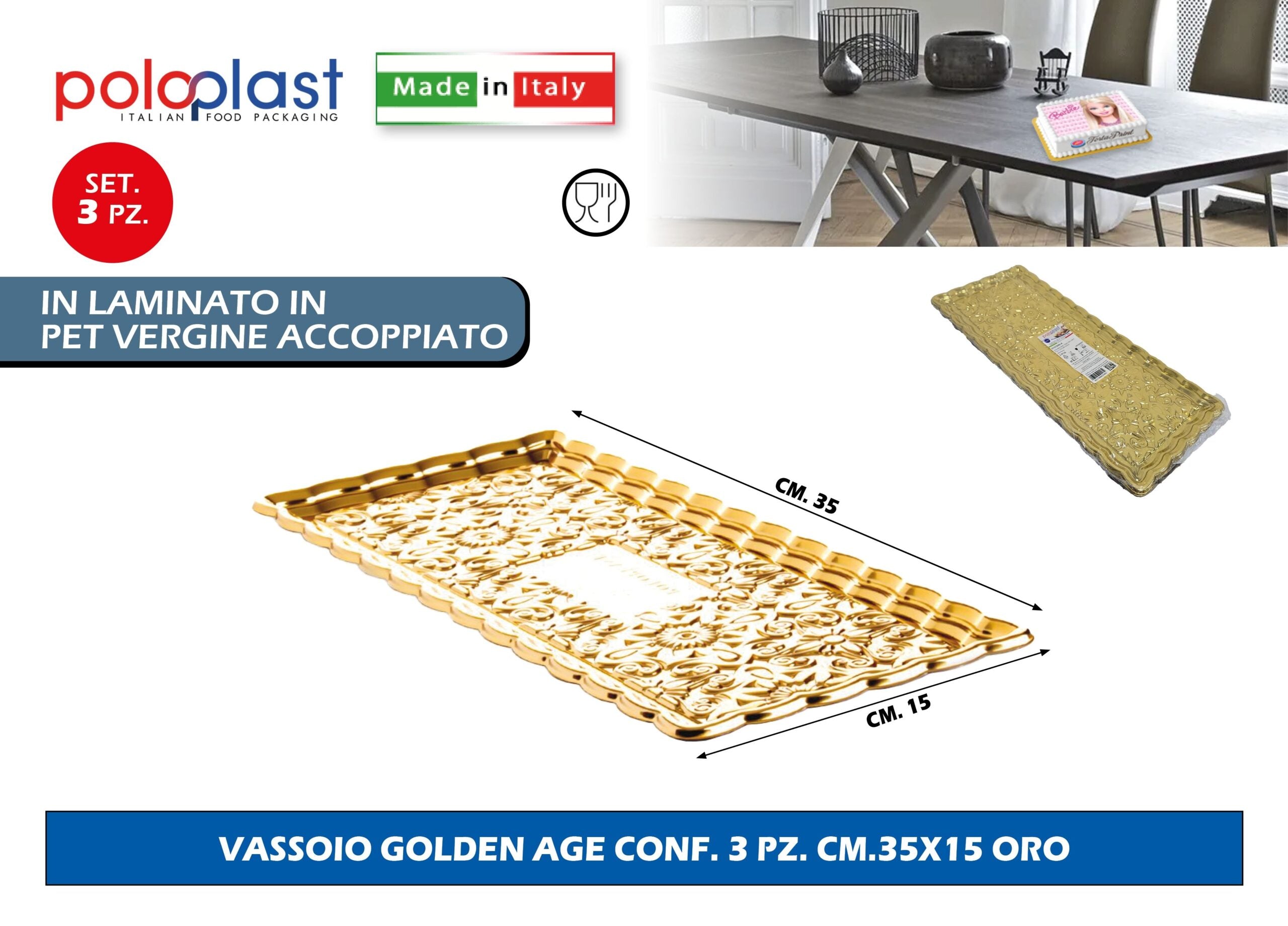 Poloplast Vassoio Golden Age Conf. 3 Pz. Cm.35X15 Oro