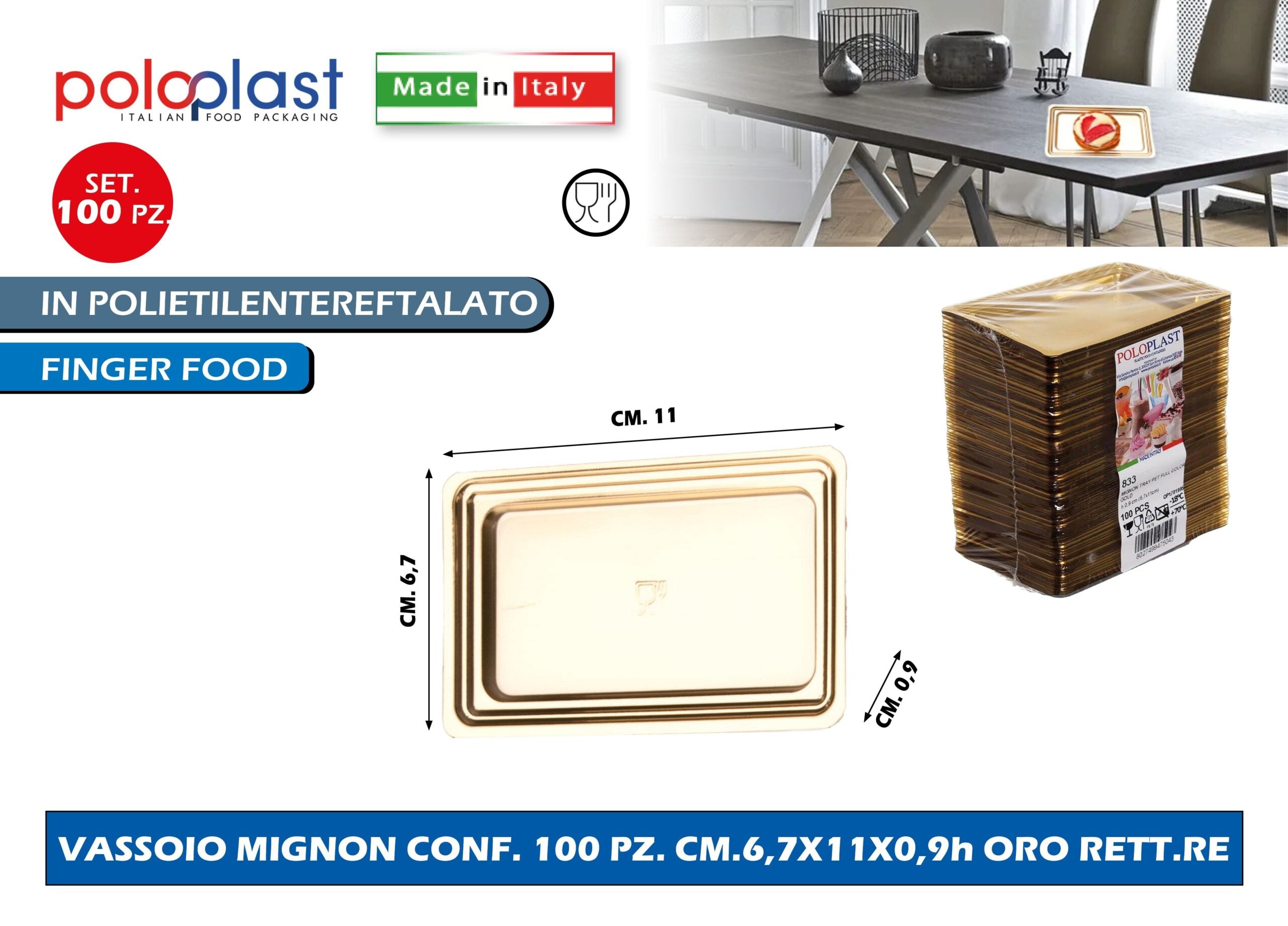 Poloplast Vassoio Mignon Conf. 100 Pz. Cm.6,7X11X0,9H Oro Rett.Re