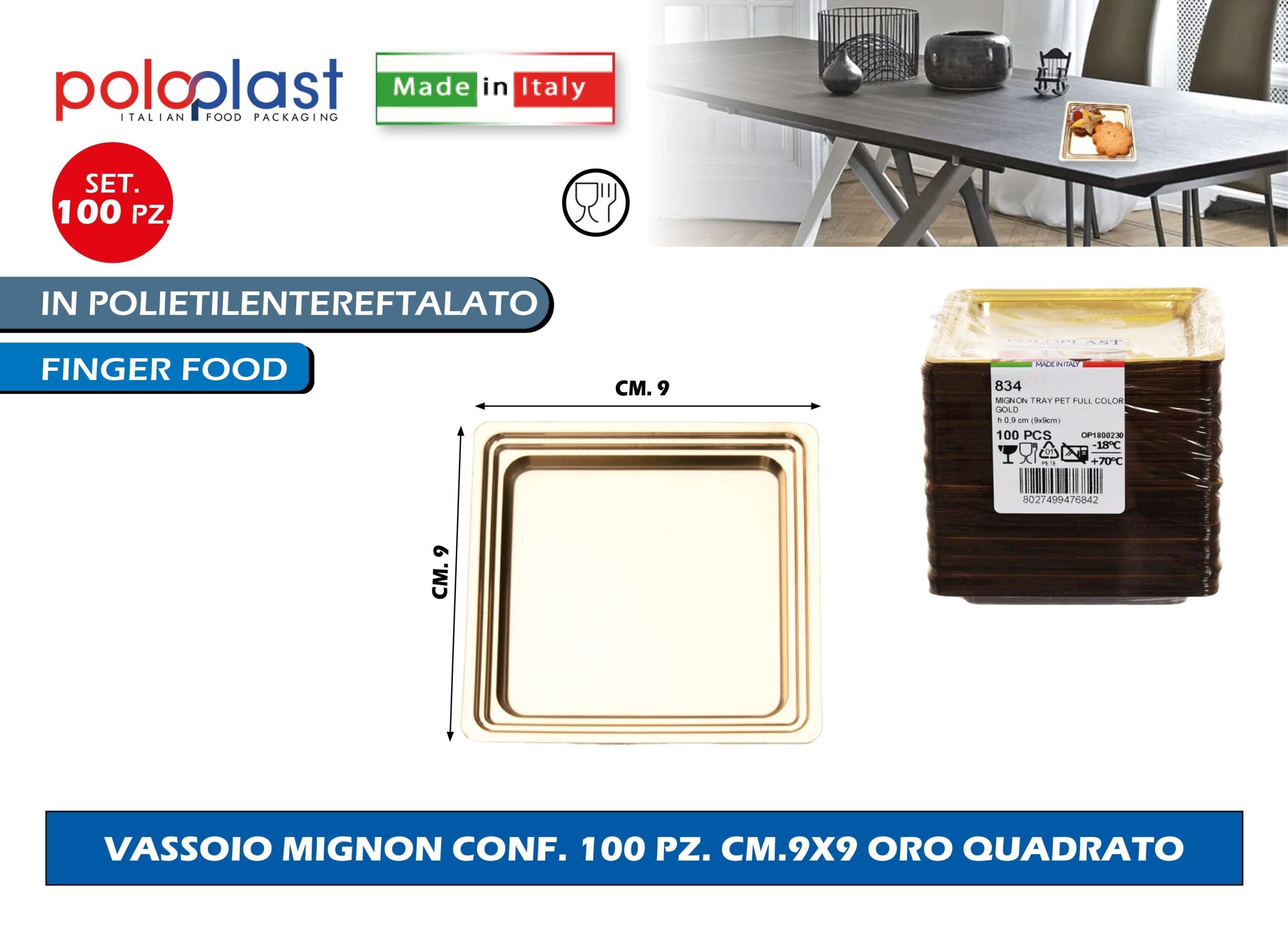 Poloplast Vassoio Mignon Conf. 100 Pz. Cm.9X9 Oro Quadrato
