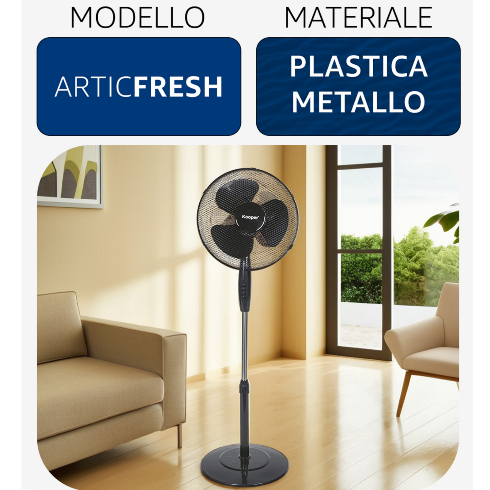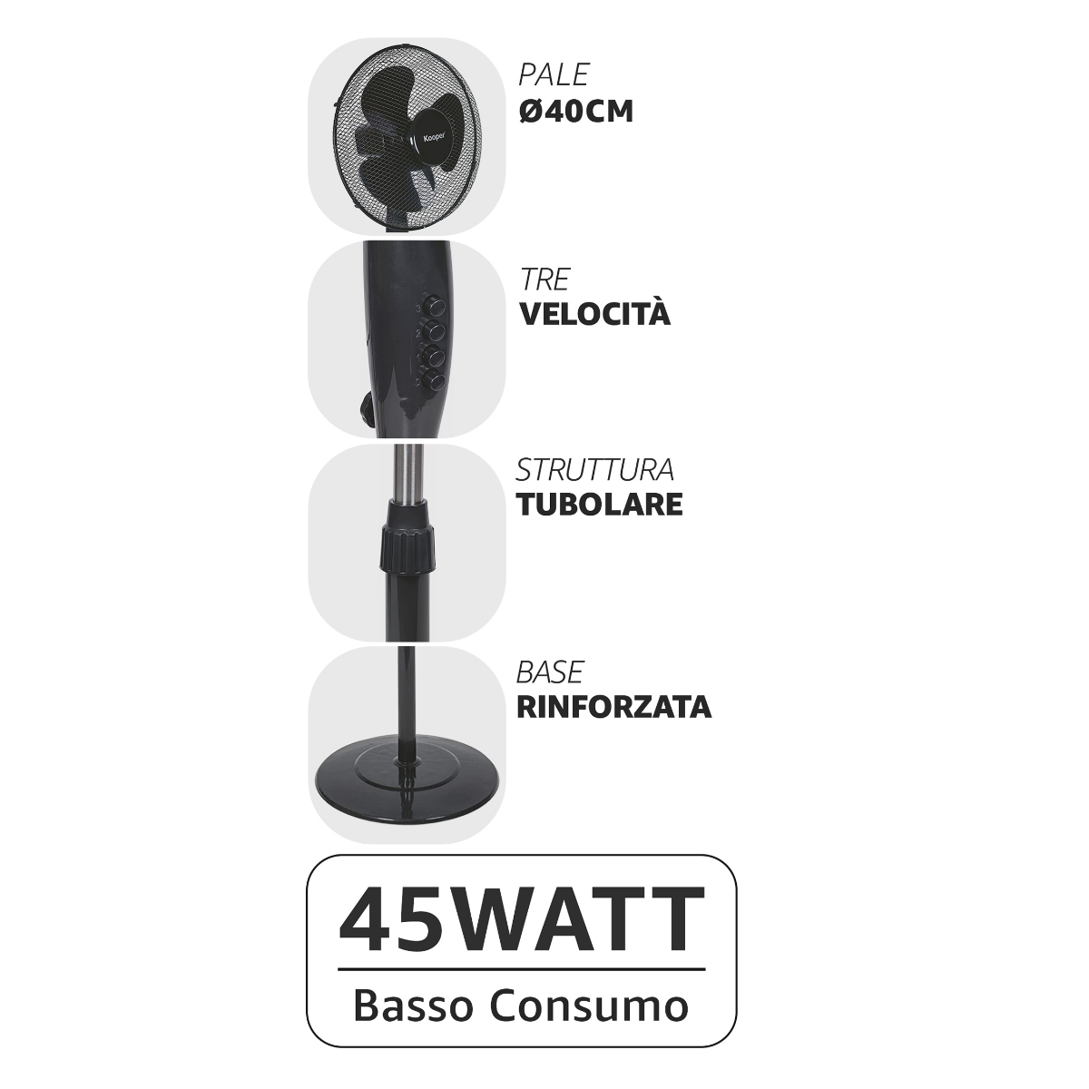 Ventilatore a Piantana 45W con Pala da 40 cm Regolabile e Silenzioso